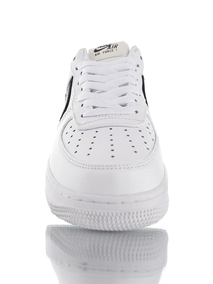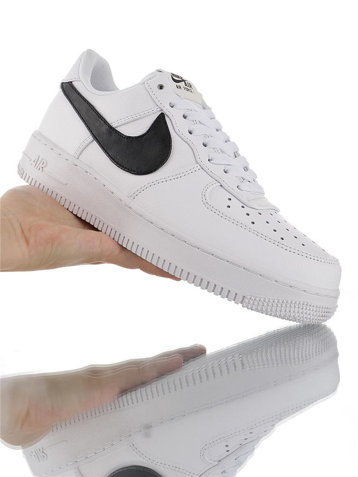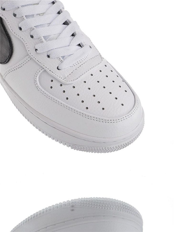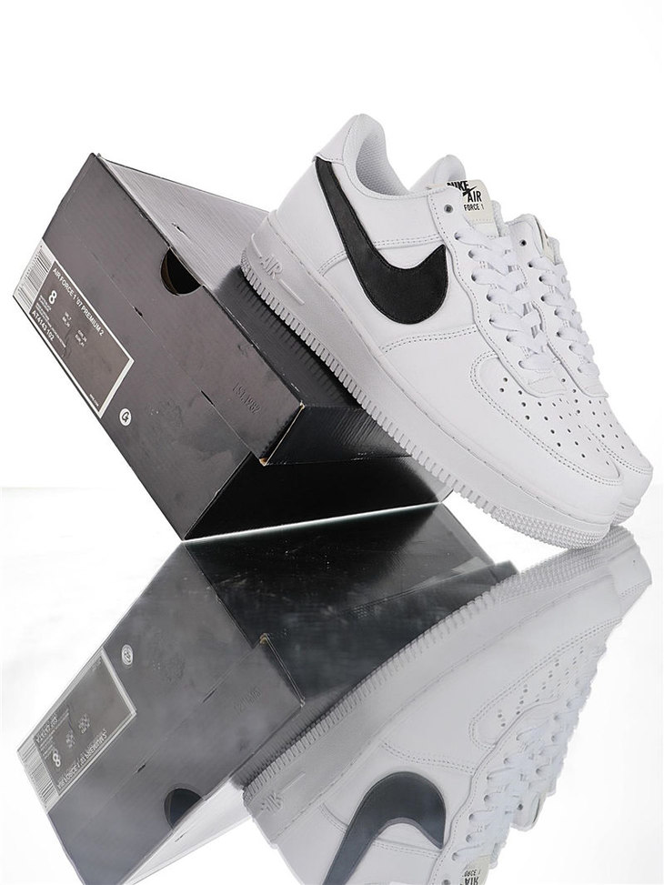 耐克Nike Air Force 1 ´07 Low Premium 采用软纹荔枝纹牛剖革 内置全掌air sole气垫 耐克空军一号经典百搭休闲运动板鞋 白黑放大钩