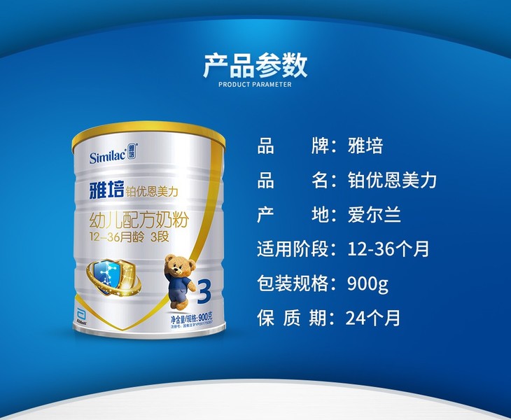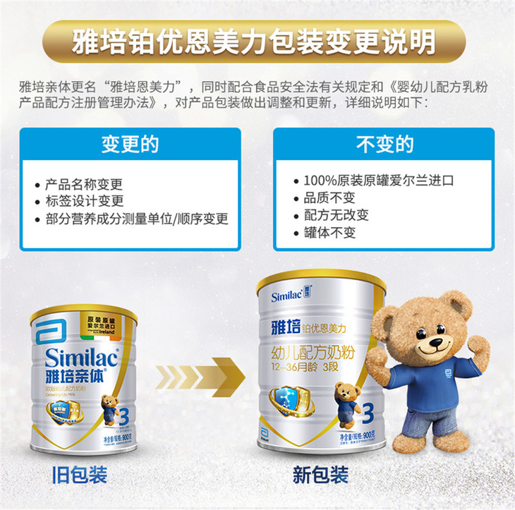 雅培铂优恩美力幼儿配方奶粉3段900g(12-36个月)