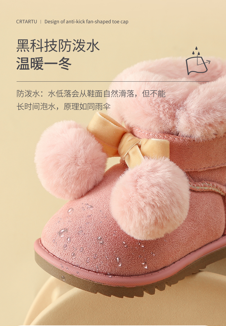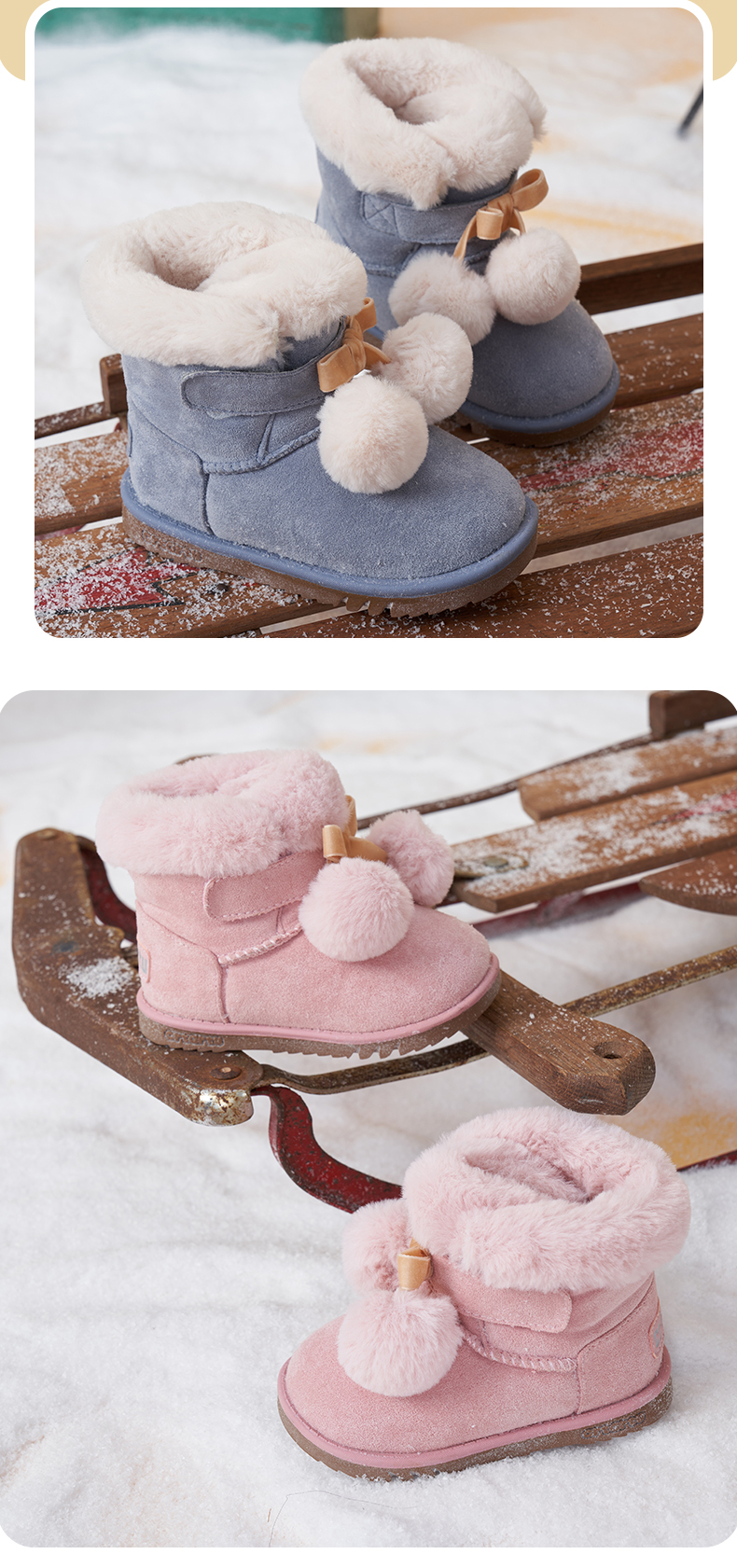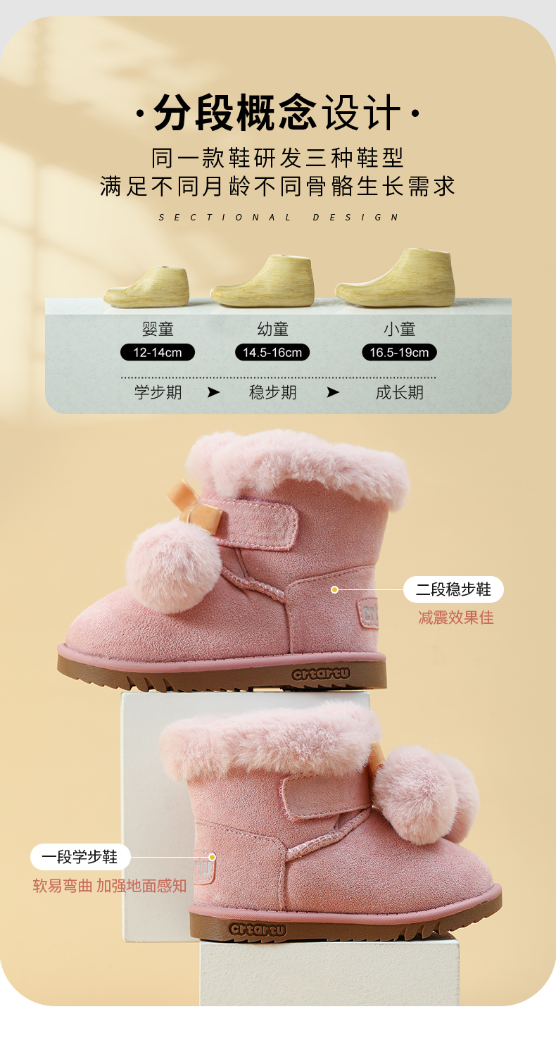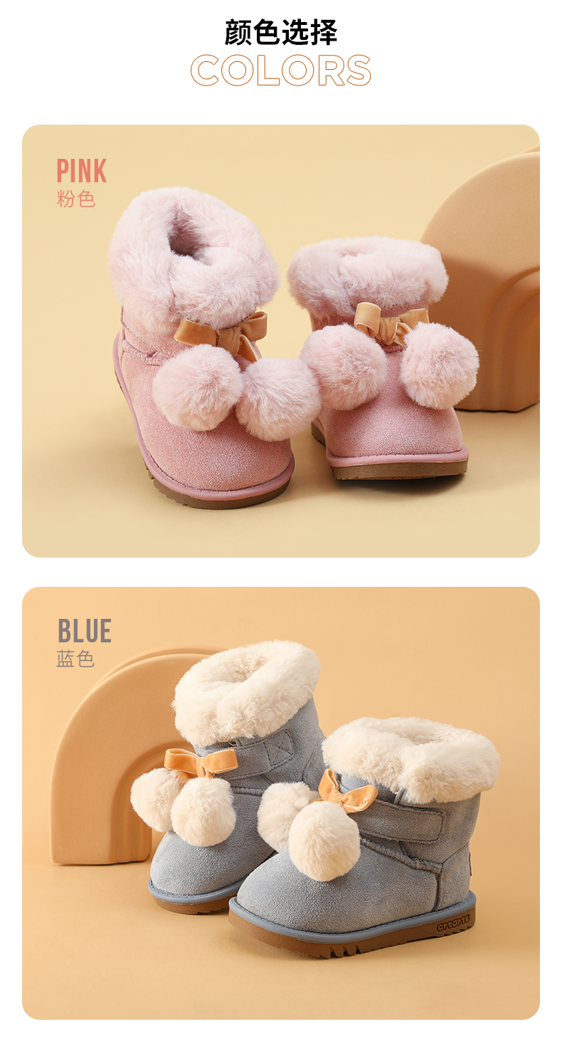 卡特兔冬款宝宝可爱球球雪地靴 粉/蓝 一段/二段