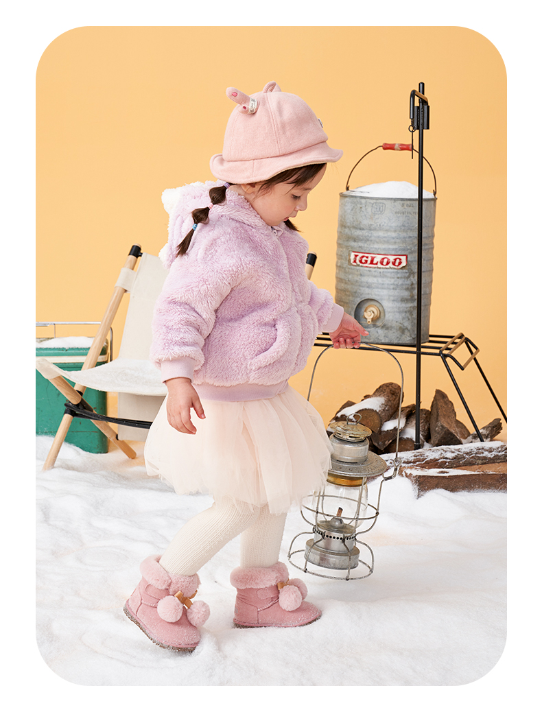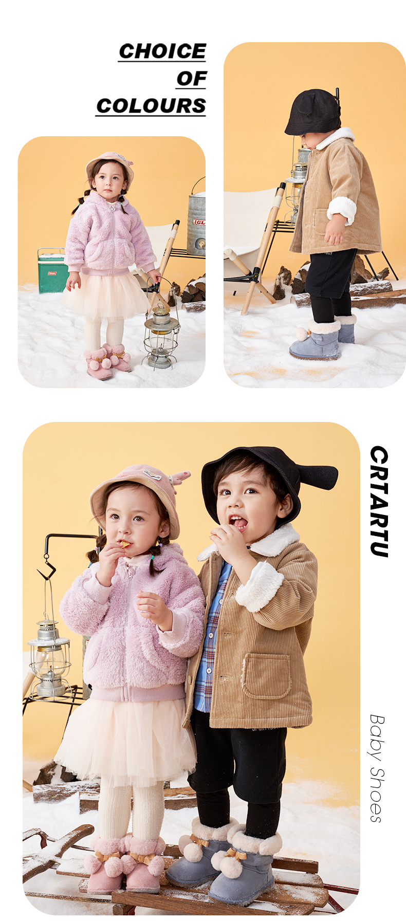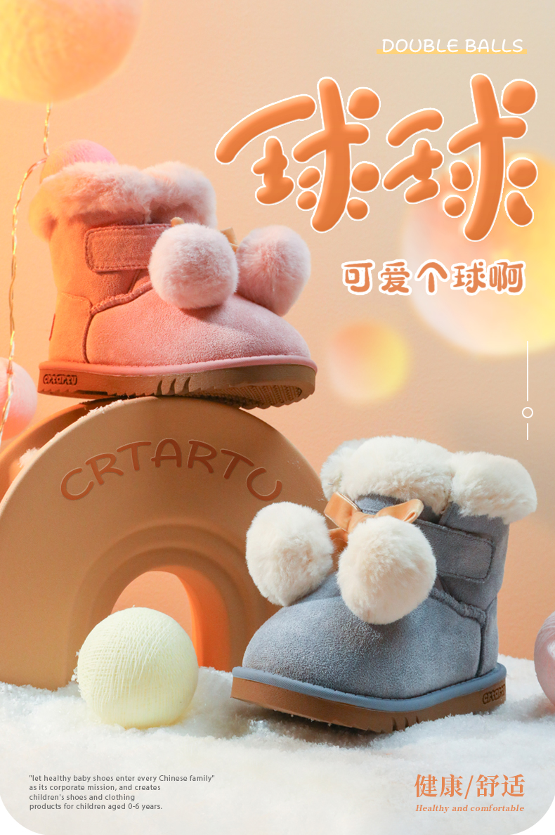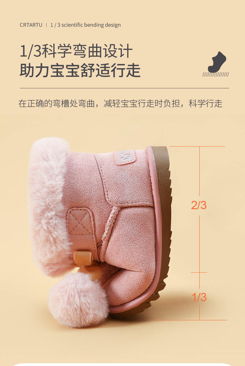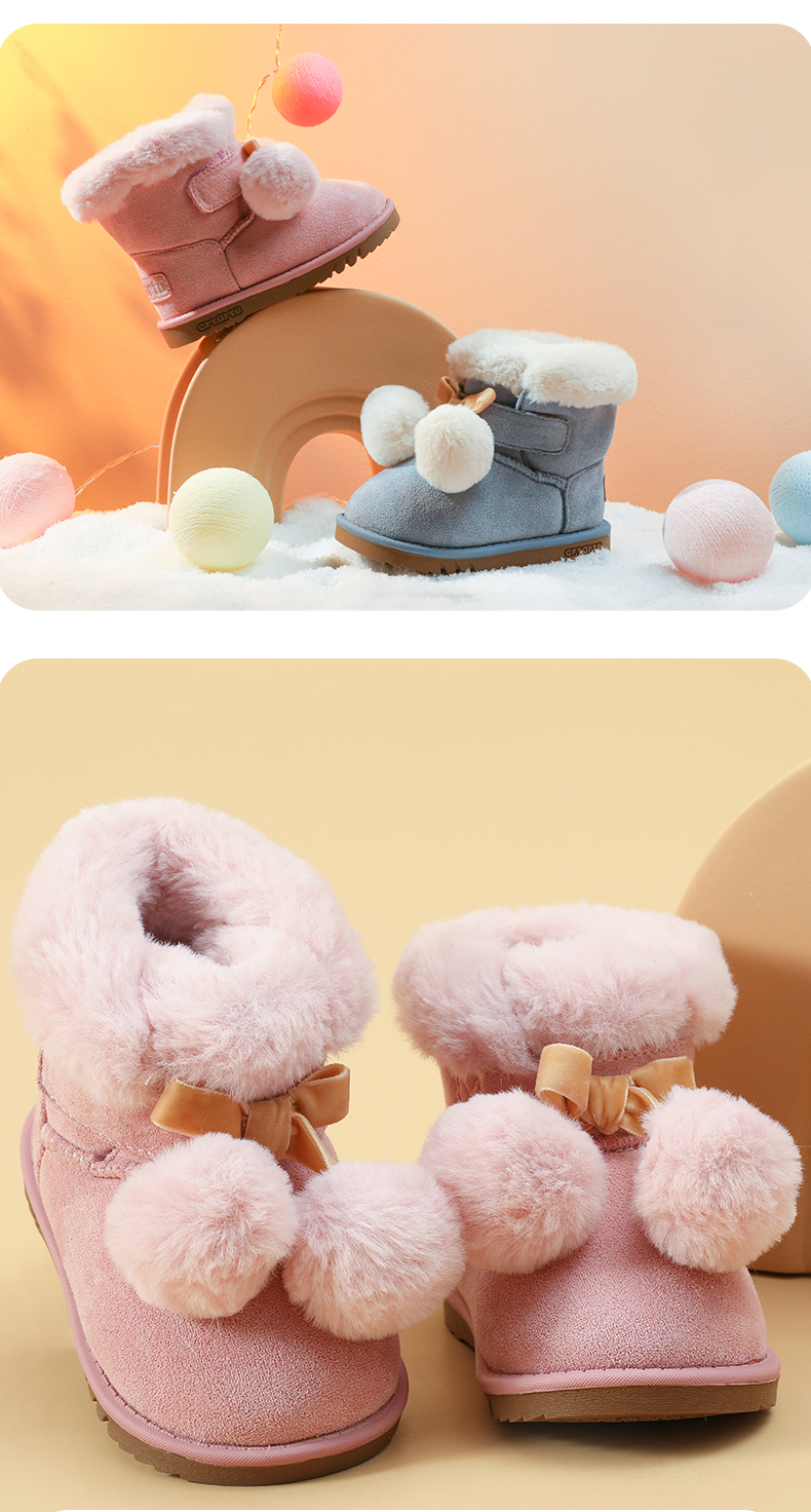 卡特兔冬款宝宝可爱球球雪地靴 粉/蓝 一段/二段