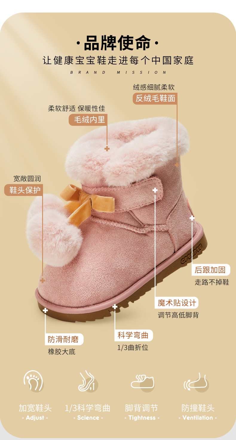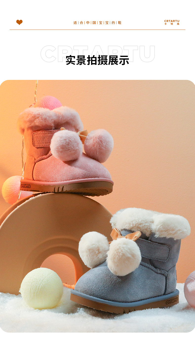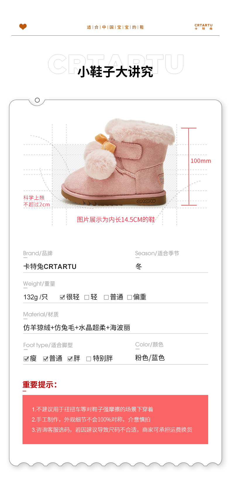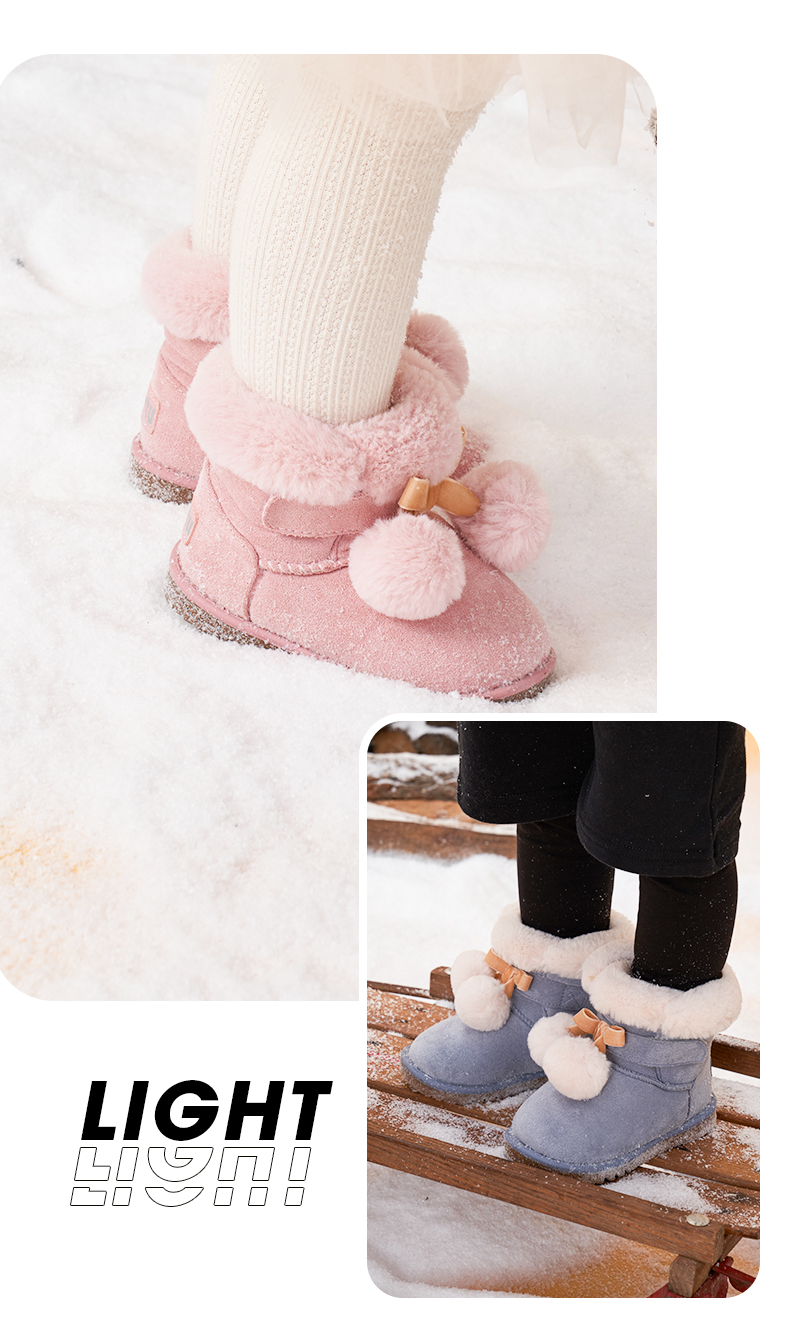 卡特兔冬款宝宝可爱球球雪地靴 粉/蓝 一段/二段