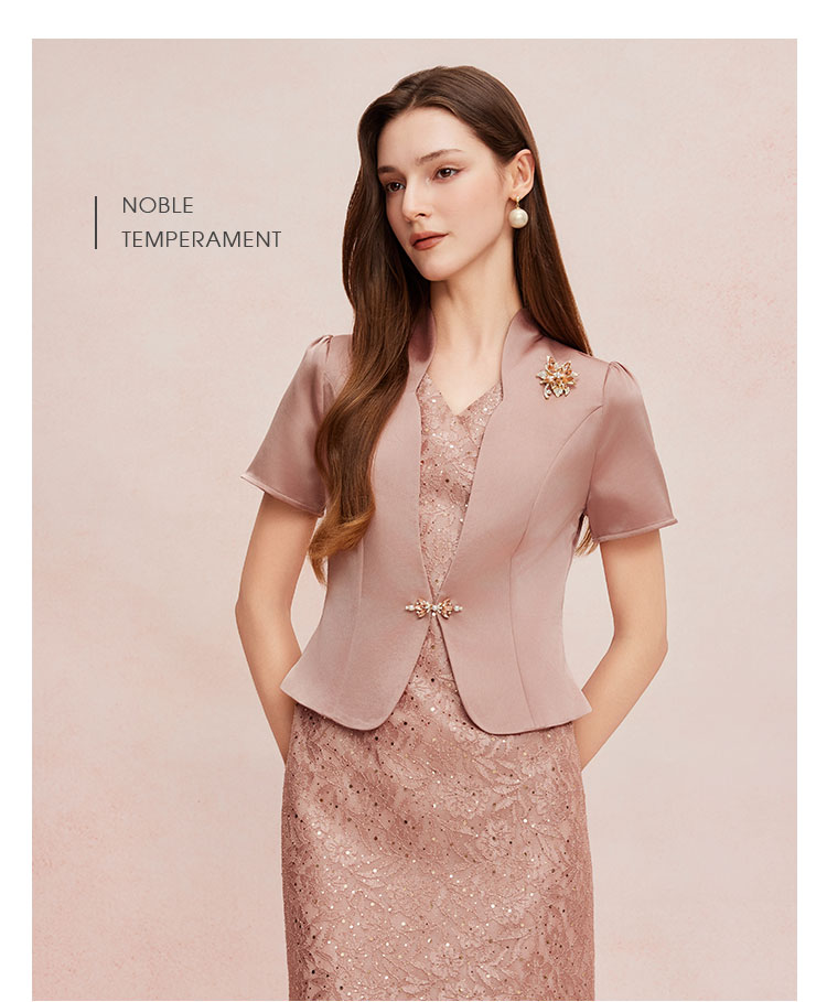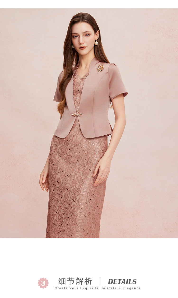 QF8C4斯尔丽25新款小立领外套端庄贵气挡肉假两件连衣裙