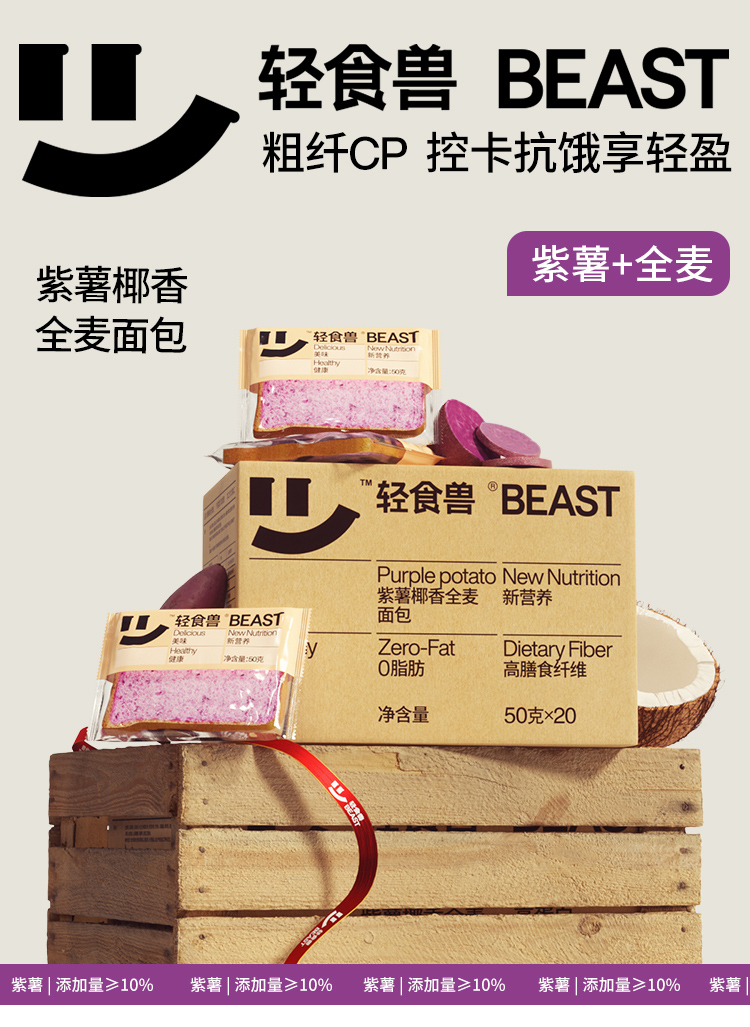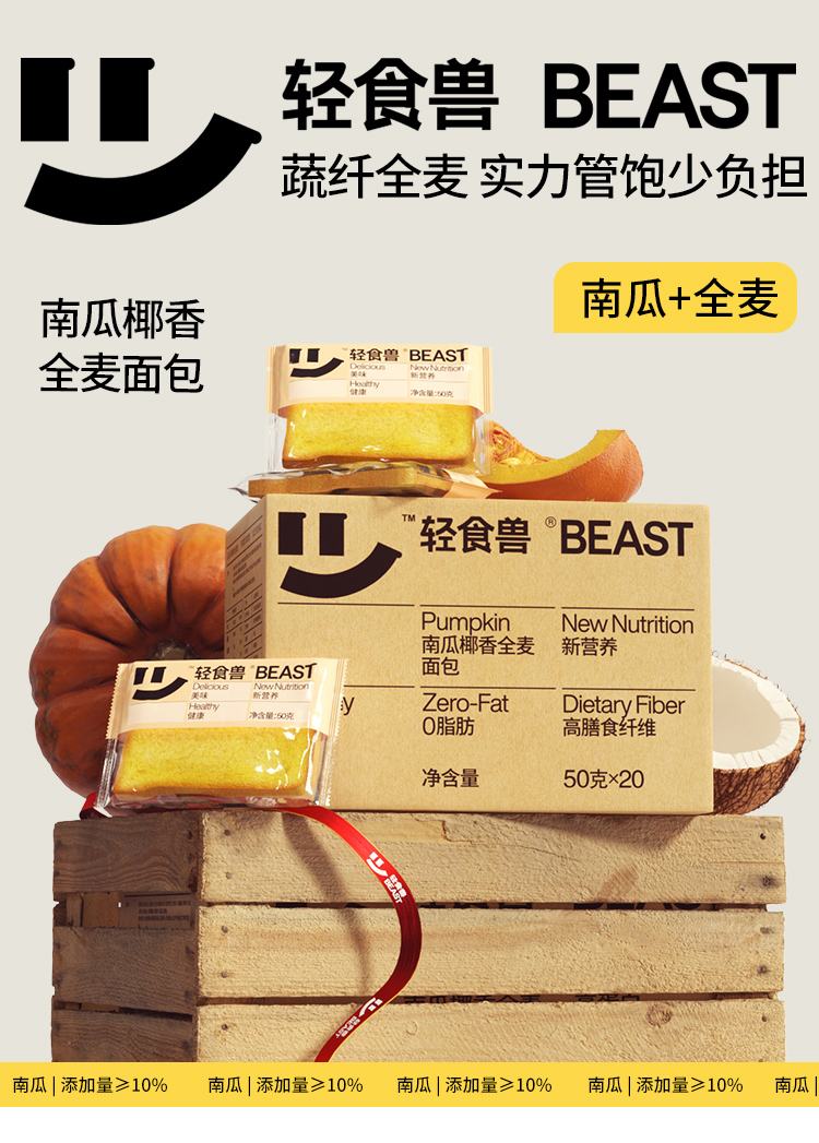 轻食兽 全麦面包 南瓜椰香1000g/紫薯椰香1000g