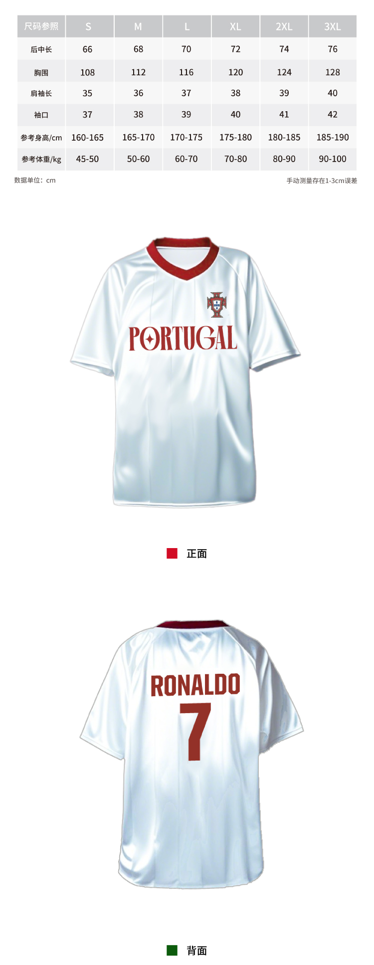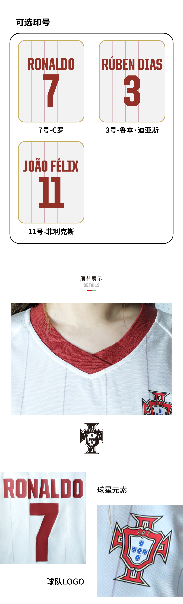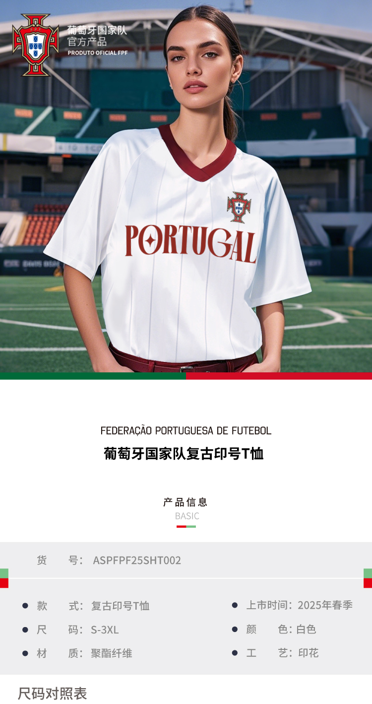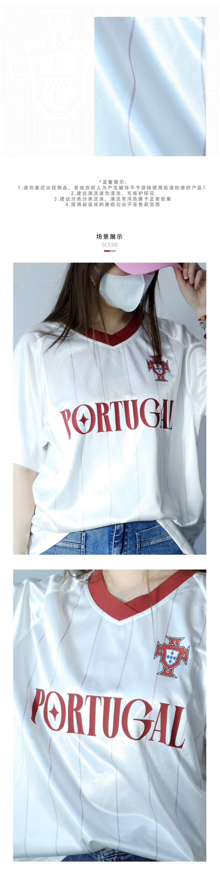 【官方正版】葡萄牙国家队 | 宽松美式复古V领插肩印号T恤球衣