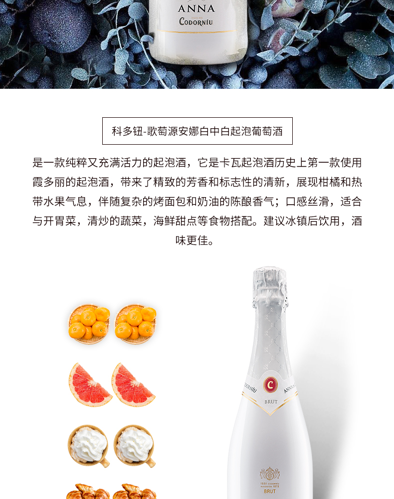 【双支特惠装】科多纽歌萄源安娜白中白起泡葡萄酒 Codorniu Anna Blanc de Blanc 750ml*2