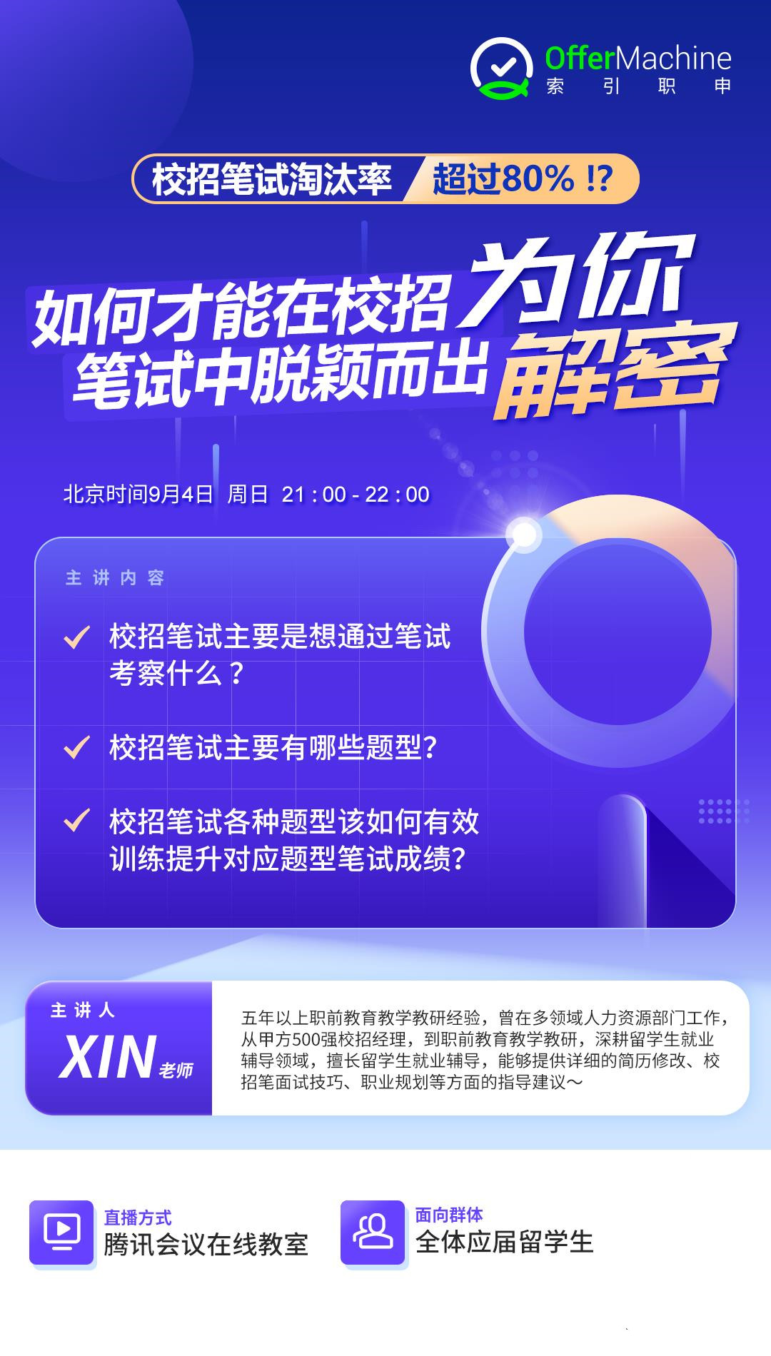 请预留正确联系方式和信息,老师会根据预留的信息联系发送讲座参与链接!