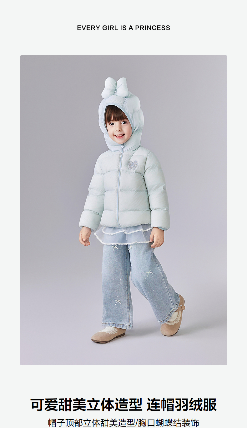 笛莎Deesha 童装女童羽绒服2025冬新款女童可爱甜美立体造型连帽羽绒服