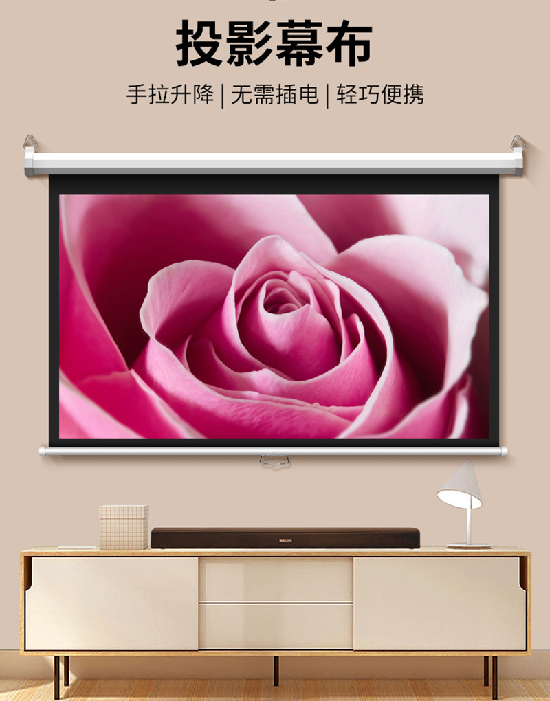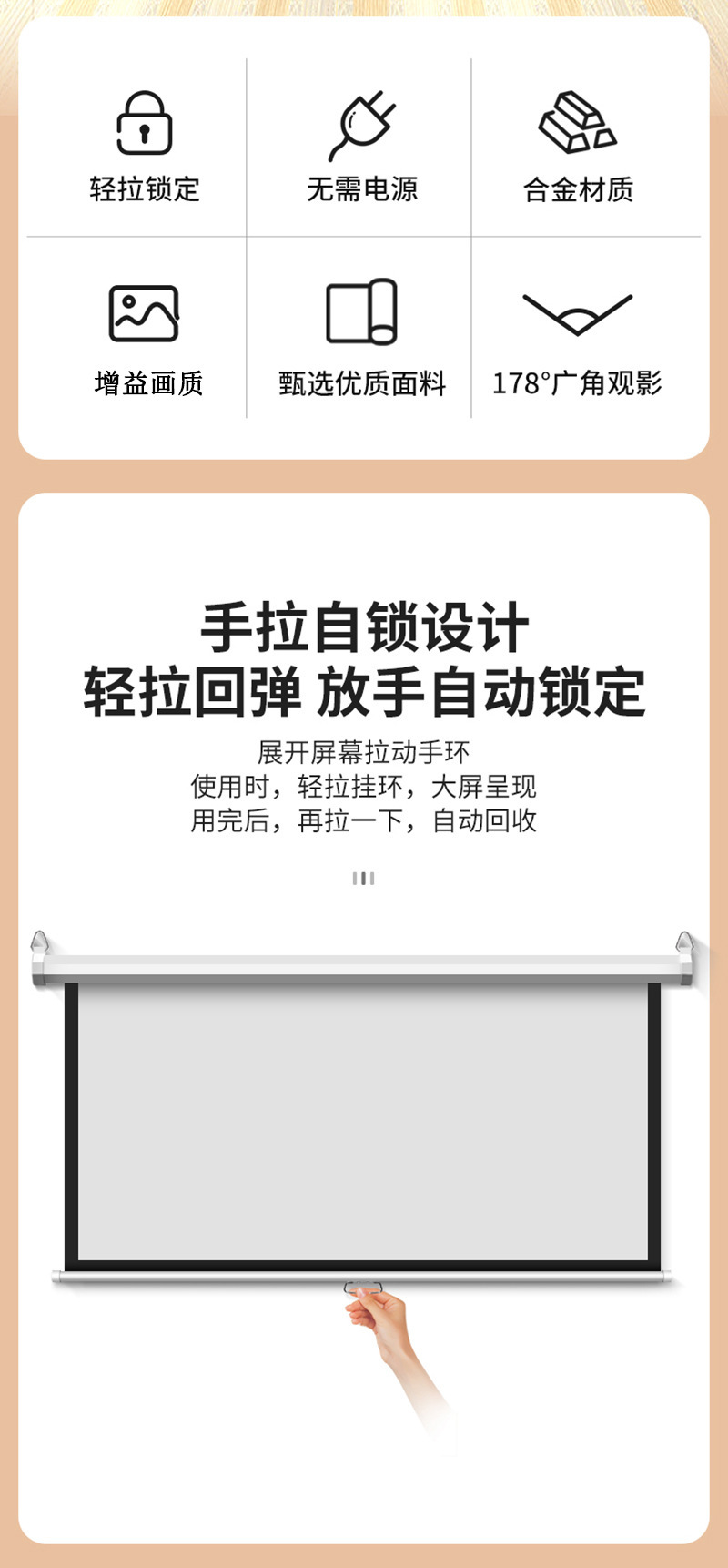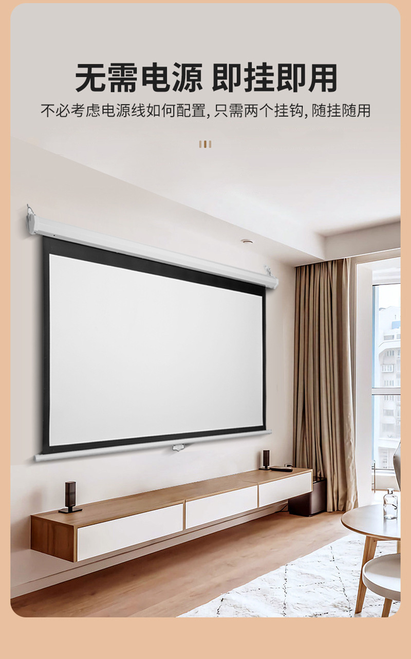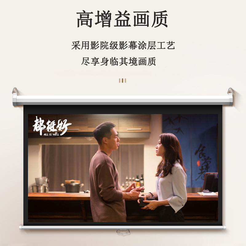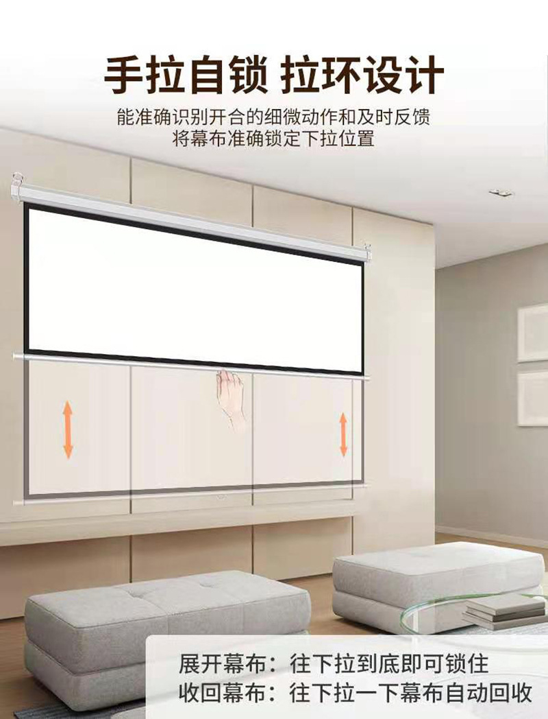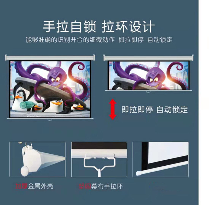 【电影便携高清家用投影仪幕布】100寸手拉升降自锁投影屏 幕壁挂幕布