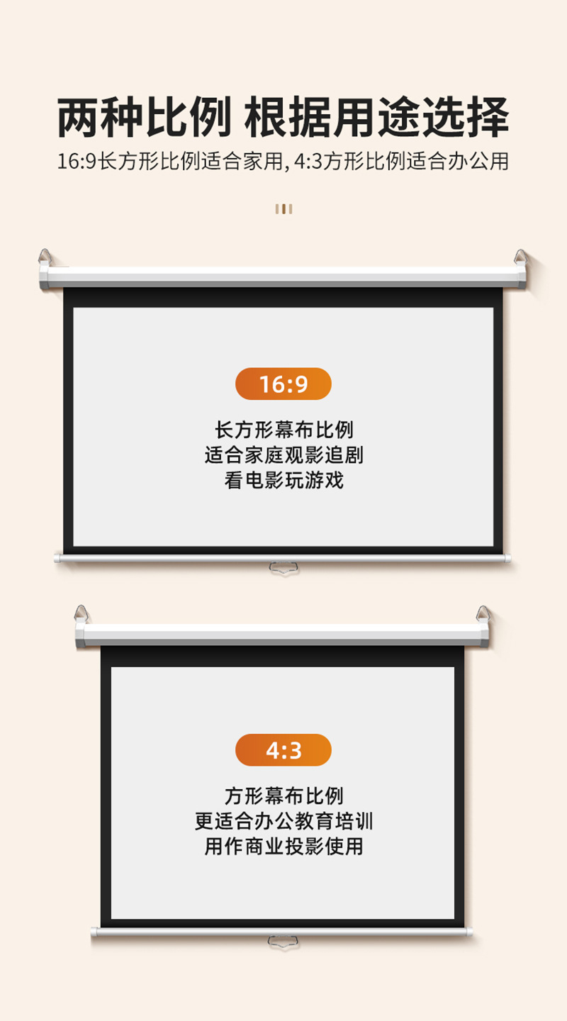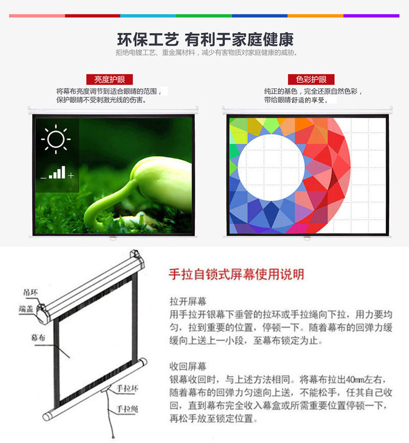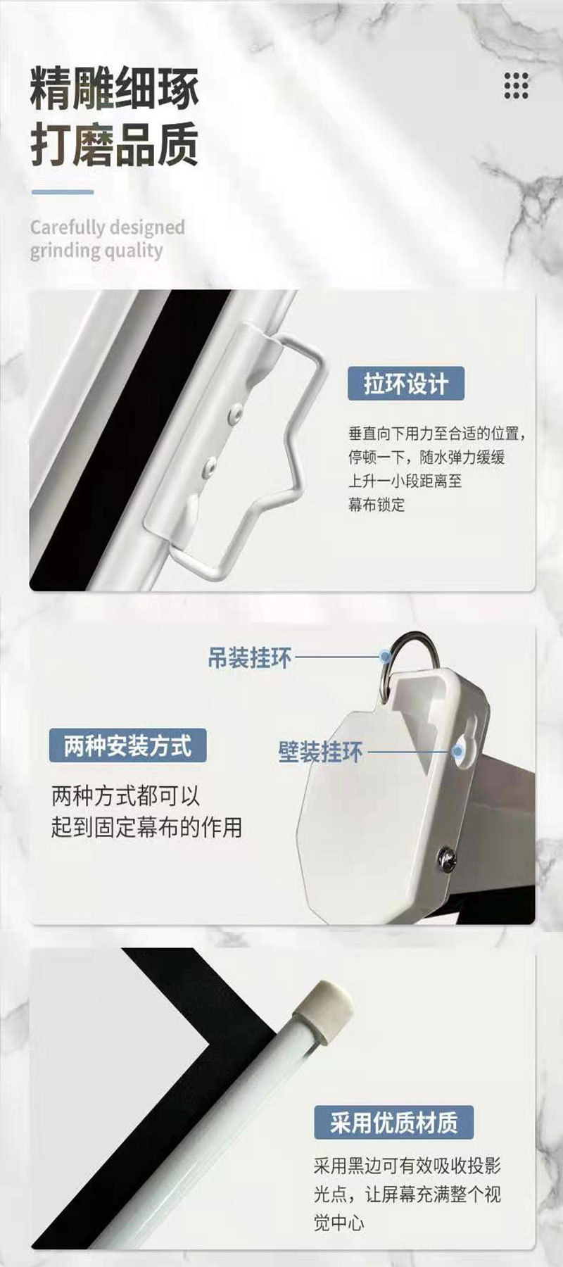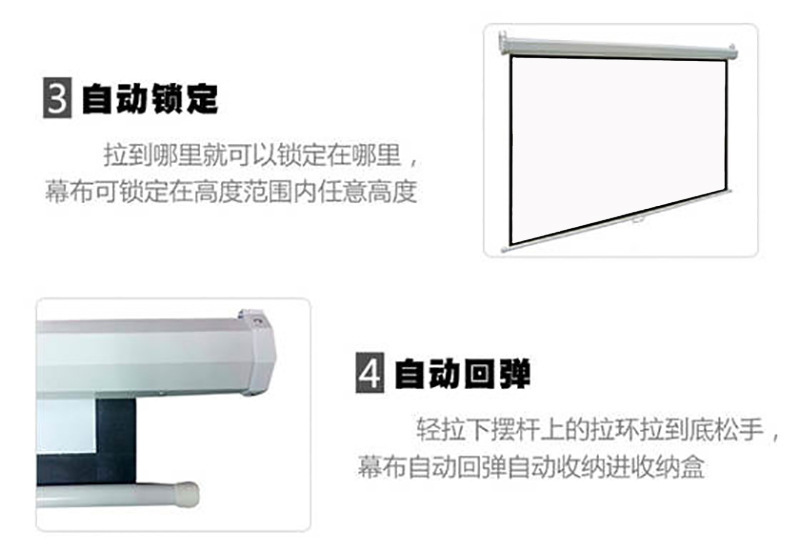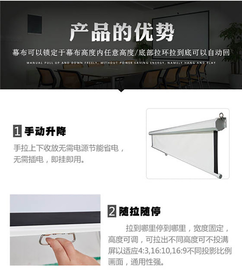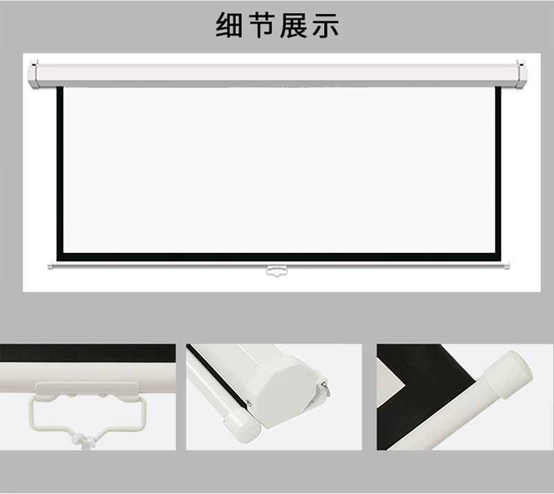 【电影便携高清家用投影仪幕布】100寸手拉升降自锁投影屏 幕壁挂幕布