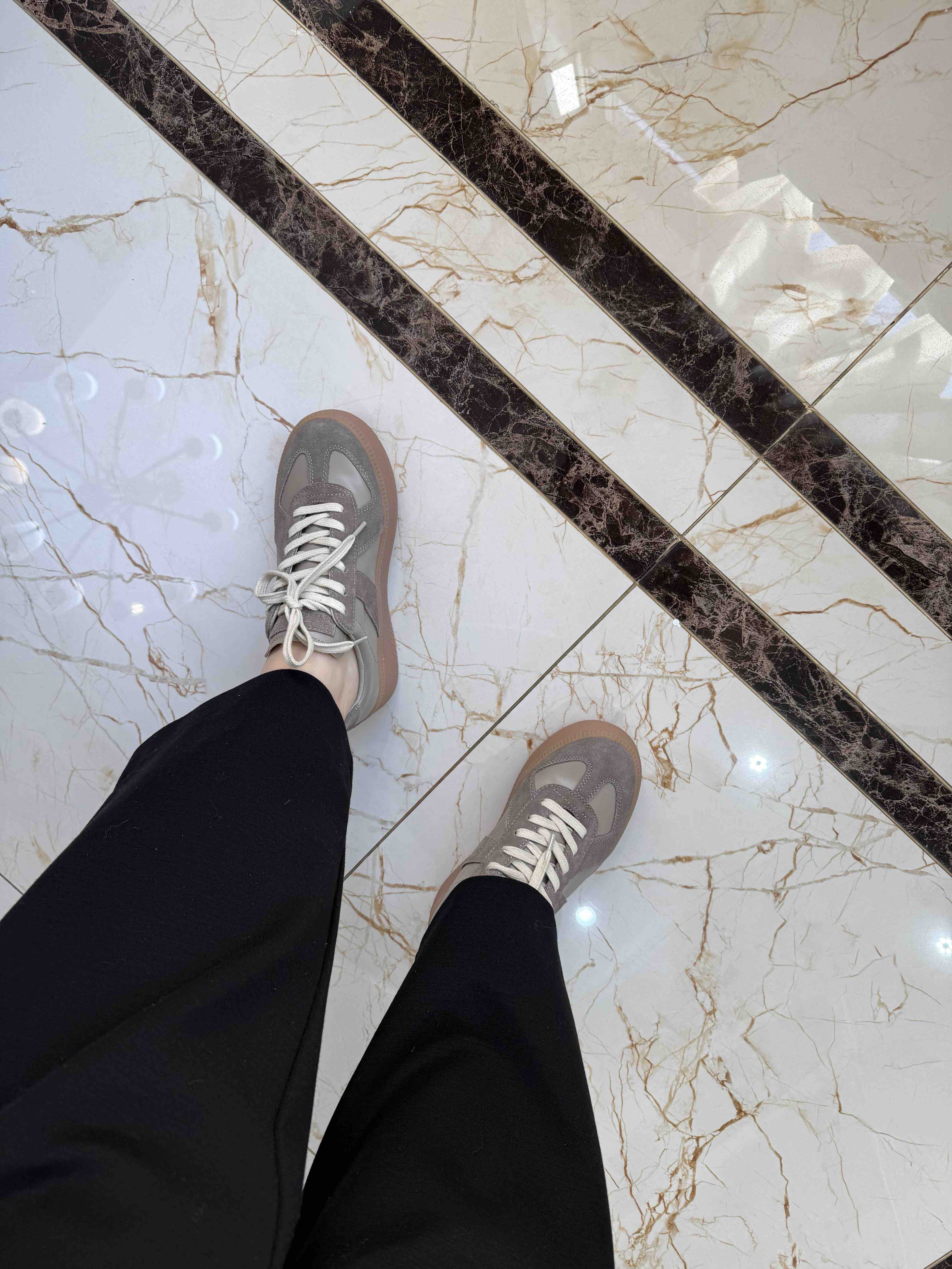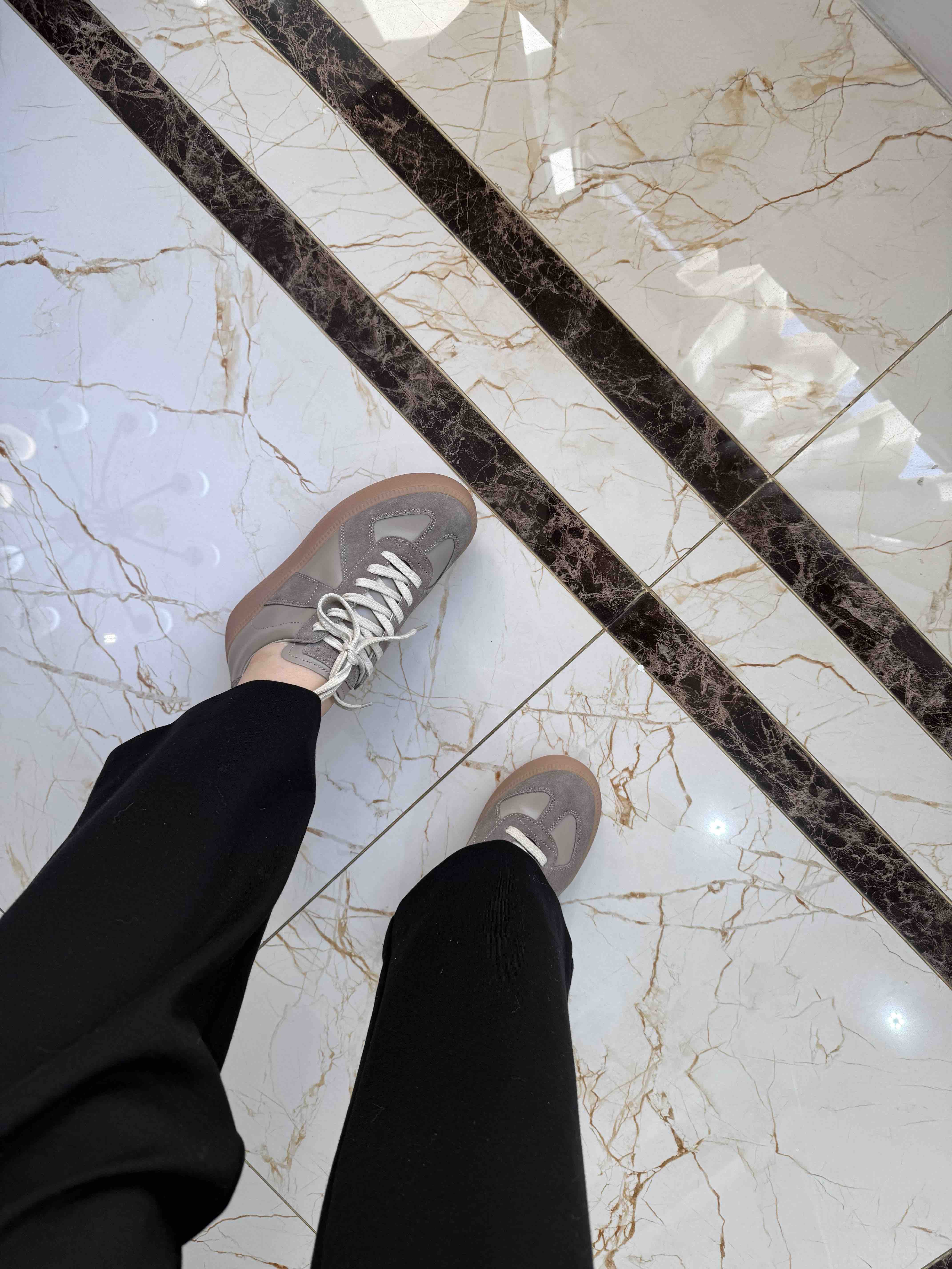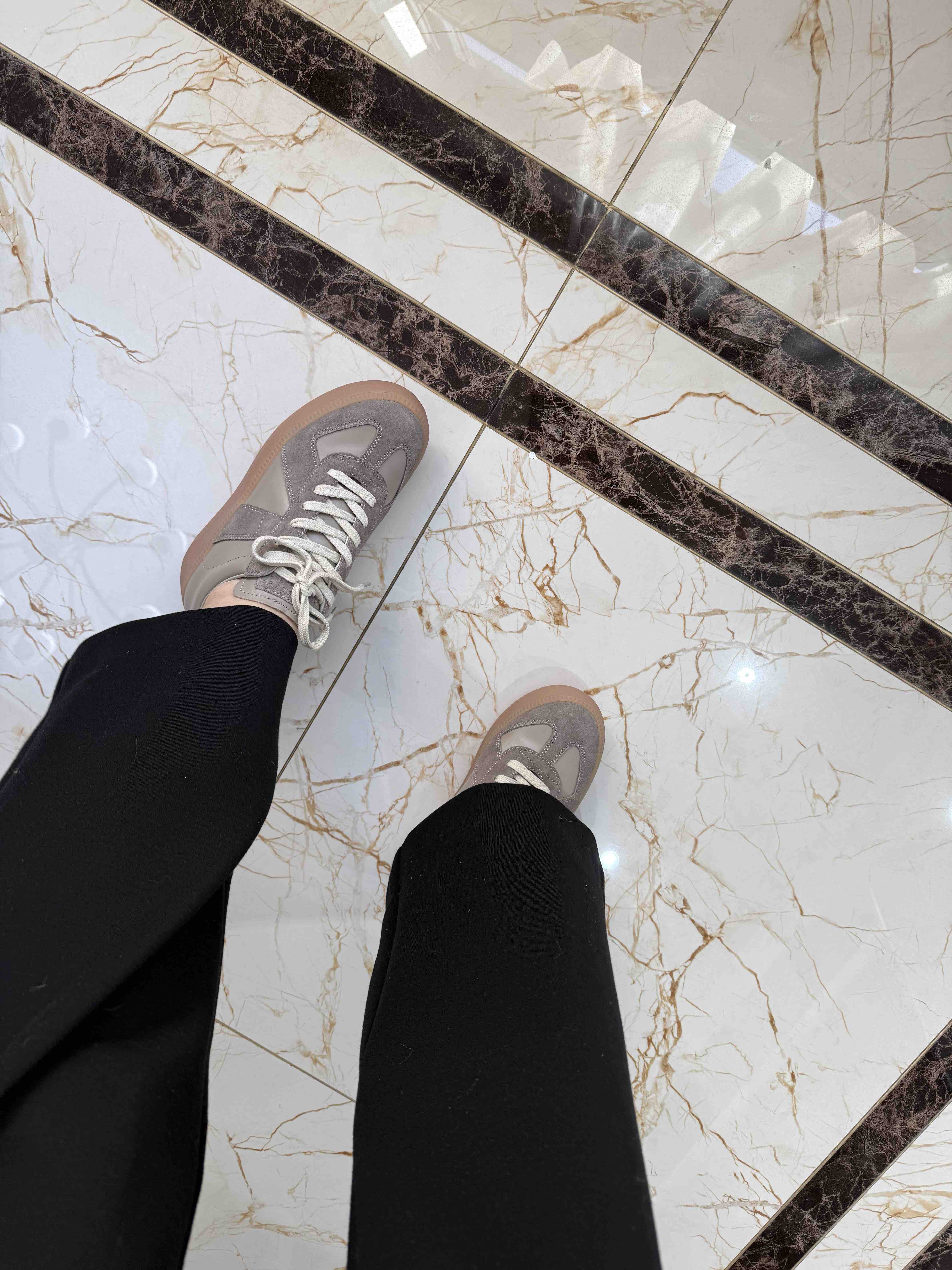 MM6厚底运动鞋,头层Napa小牛皮,透气性不言而喻,羊皮内里,丝滑温润,鞋垫也是羊皮,贴合了加厚的乳胶发泡,踩下去软软的。