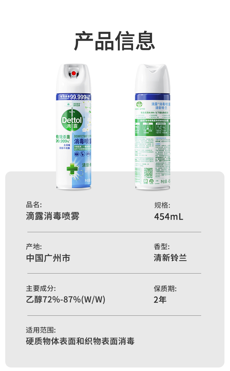 【品牌优选】滴露消毒喷雾454mlx2瓶马桶鞋袜家居消毒 阳光柑橘+清新铃兰