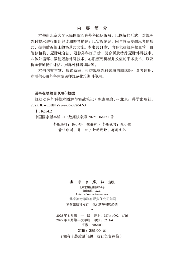 冠状动脉外科技术图解与实战笔记 陈彧 主编 冠脉靶血管的解剖与定位 血管移植物 冠脉缝合法 序贯桥技术9787030826473 科学出版社