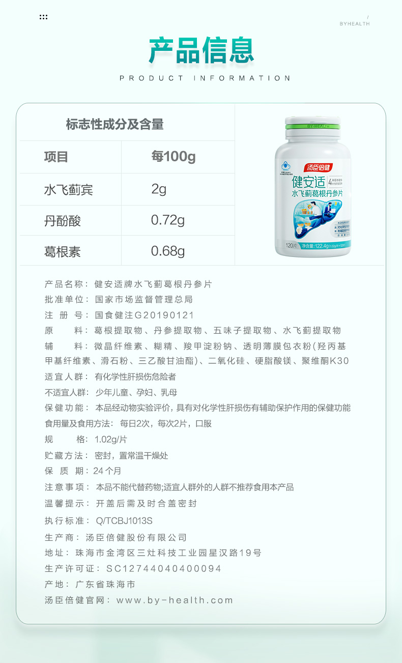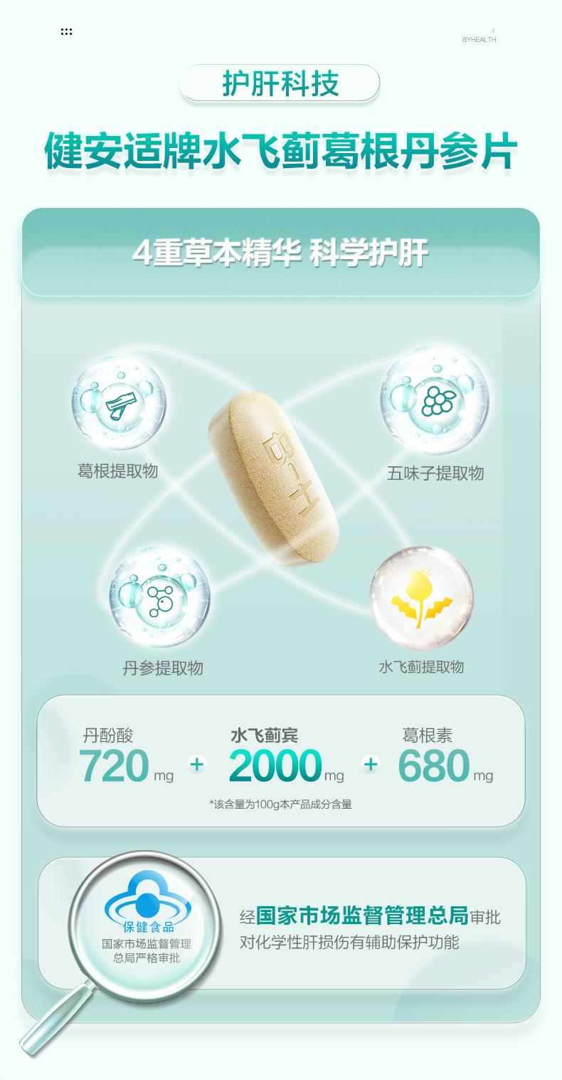 汤臣倍健健安适水飞蓟葛根丹参片熬夜喝酒肝养护