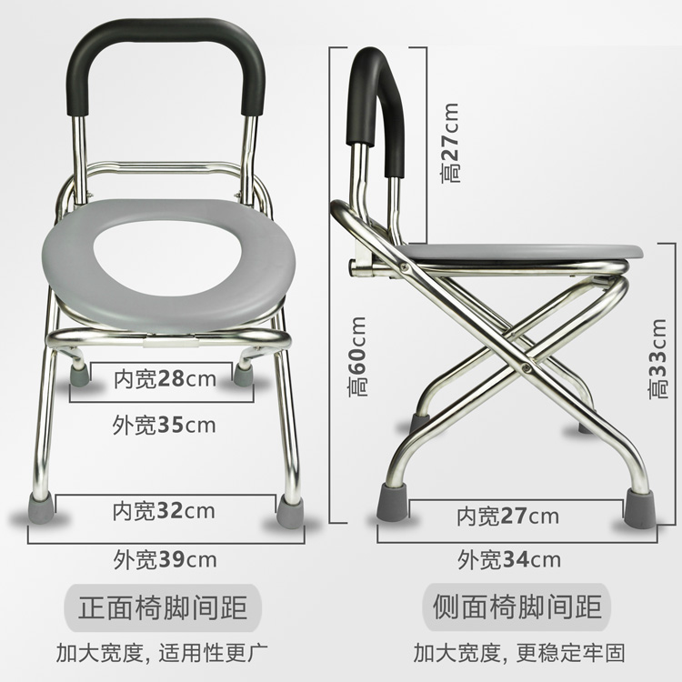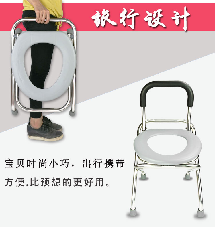 赠送便桶坐垫【折叠小巧!携带轻便】可折叠不锈钢老人坐便椅孕妇坐便器厕所蹲厕大便凳马桶病人座徐小。ry