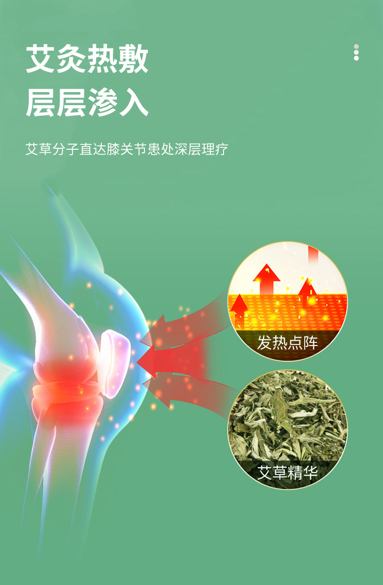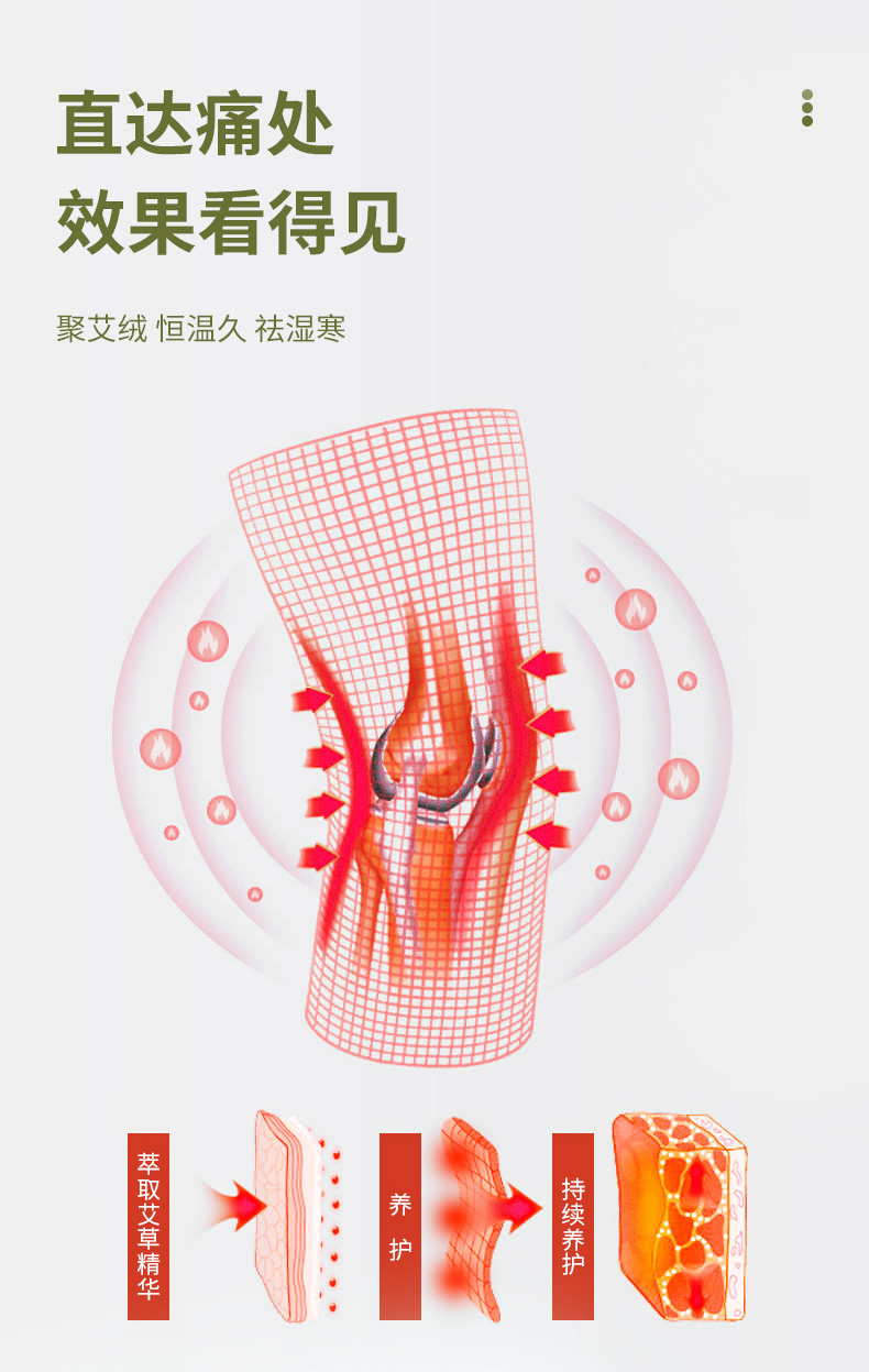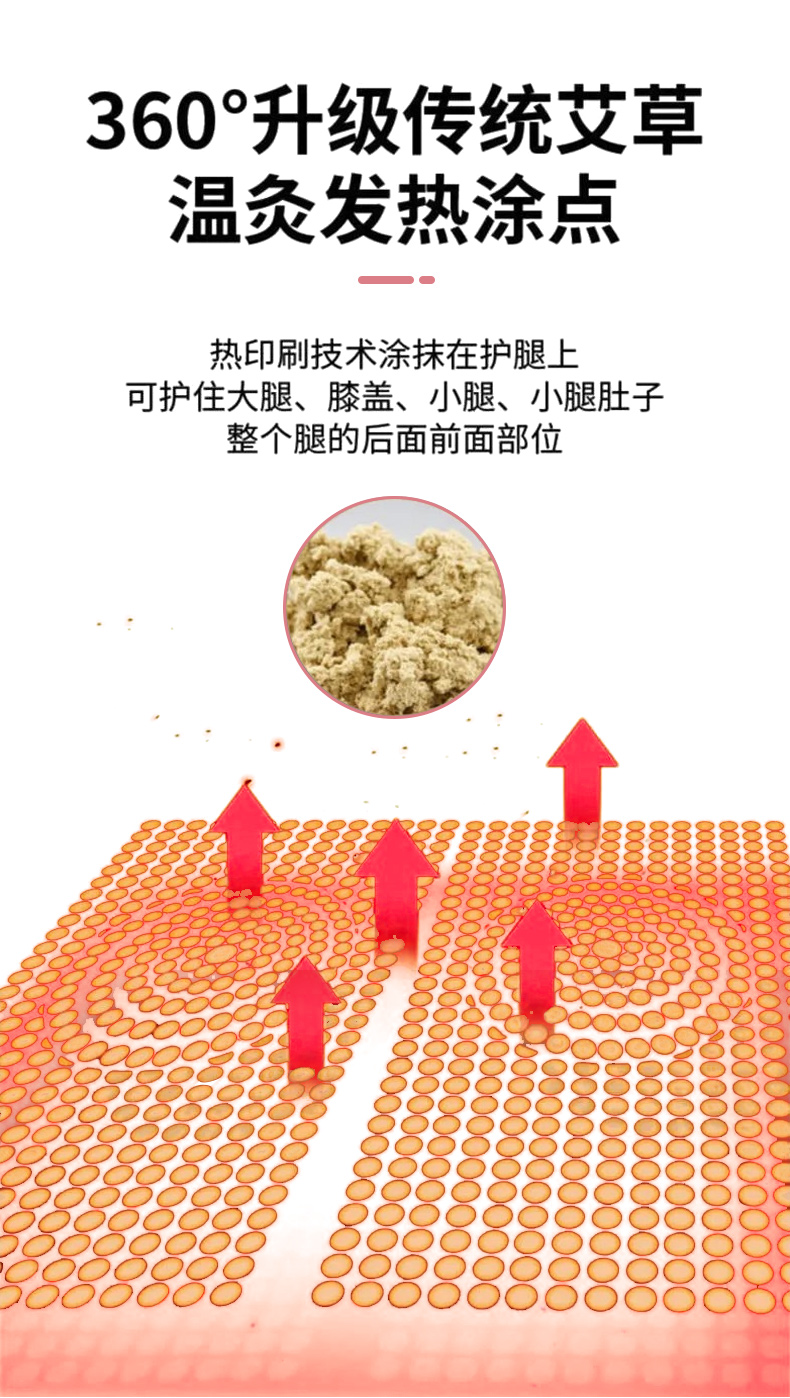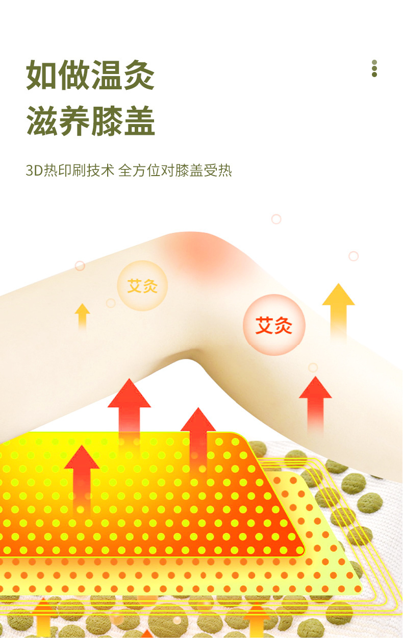 点阵排列的艾草精华,可护膝温灸,深入皮肤,持续温暖腿部~