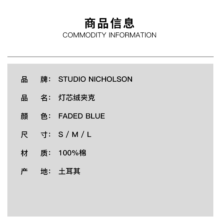 STUDIO NICHOLSON JACKETS - TRUCKER JACKET 男装灯芯绒夹克外套