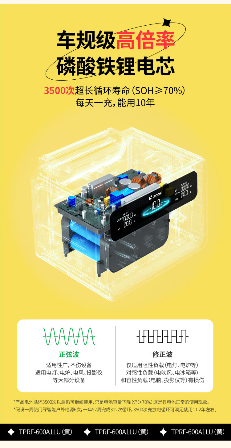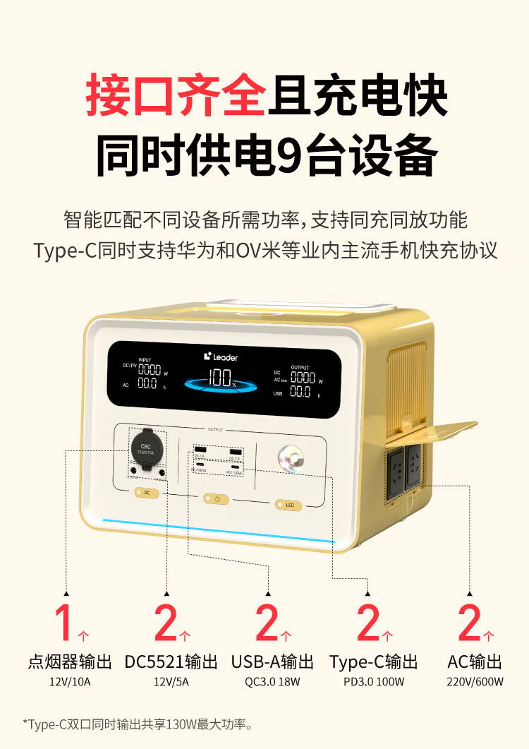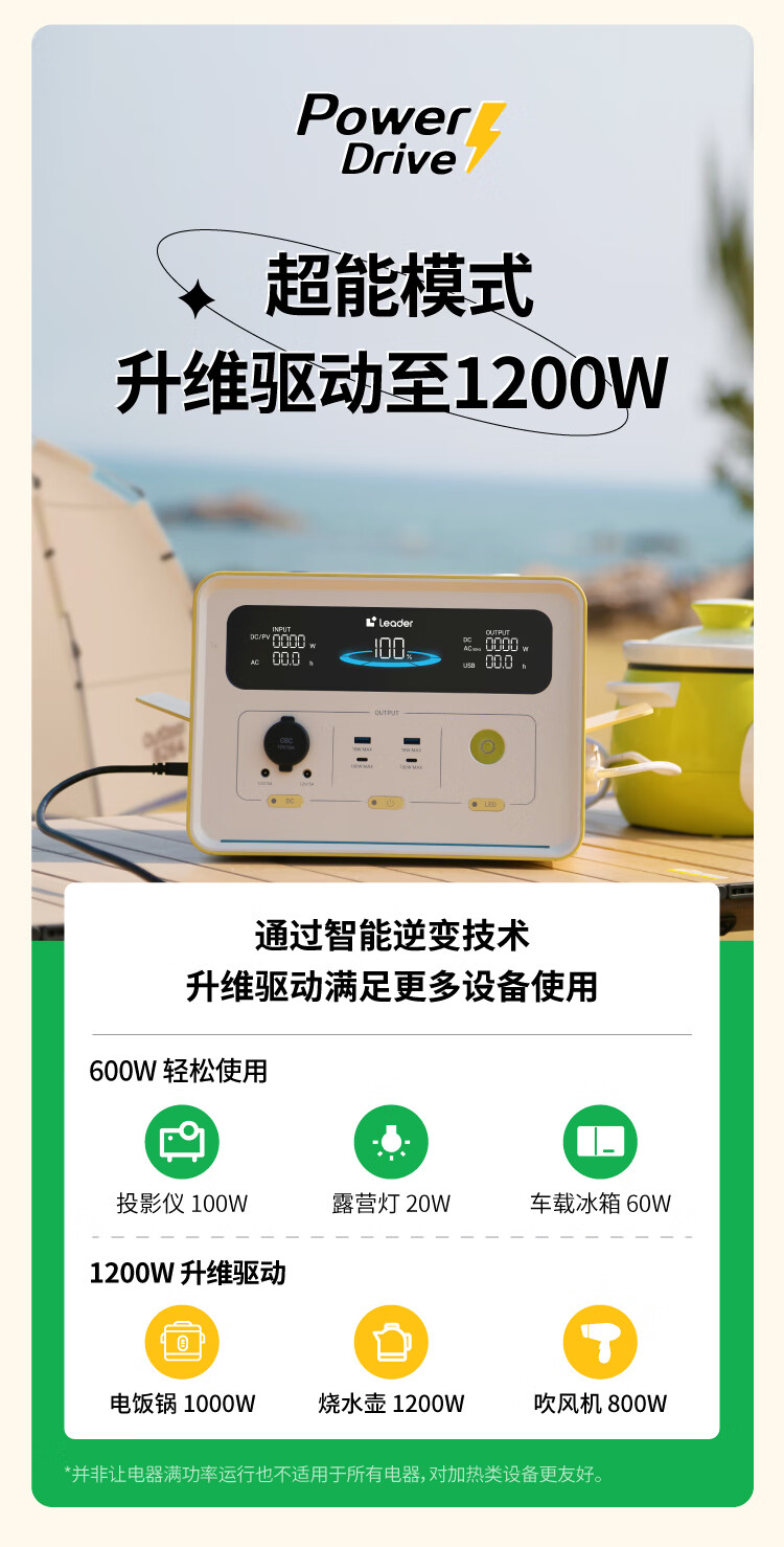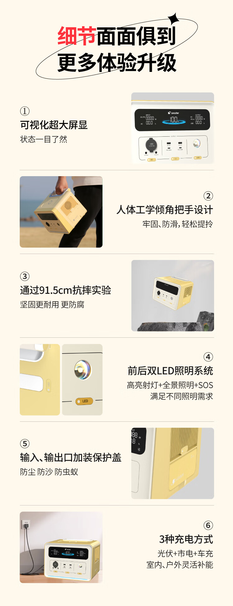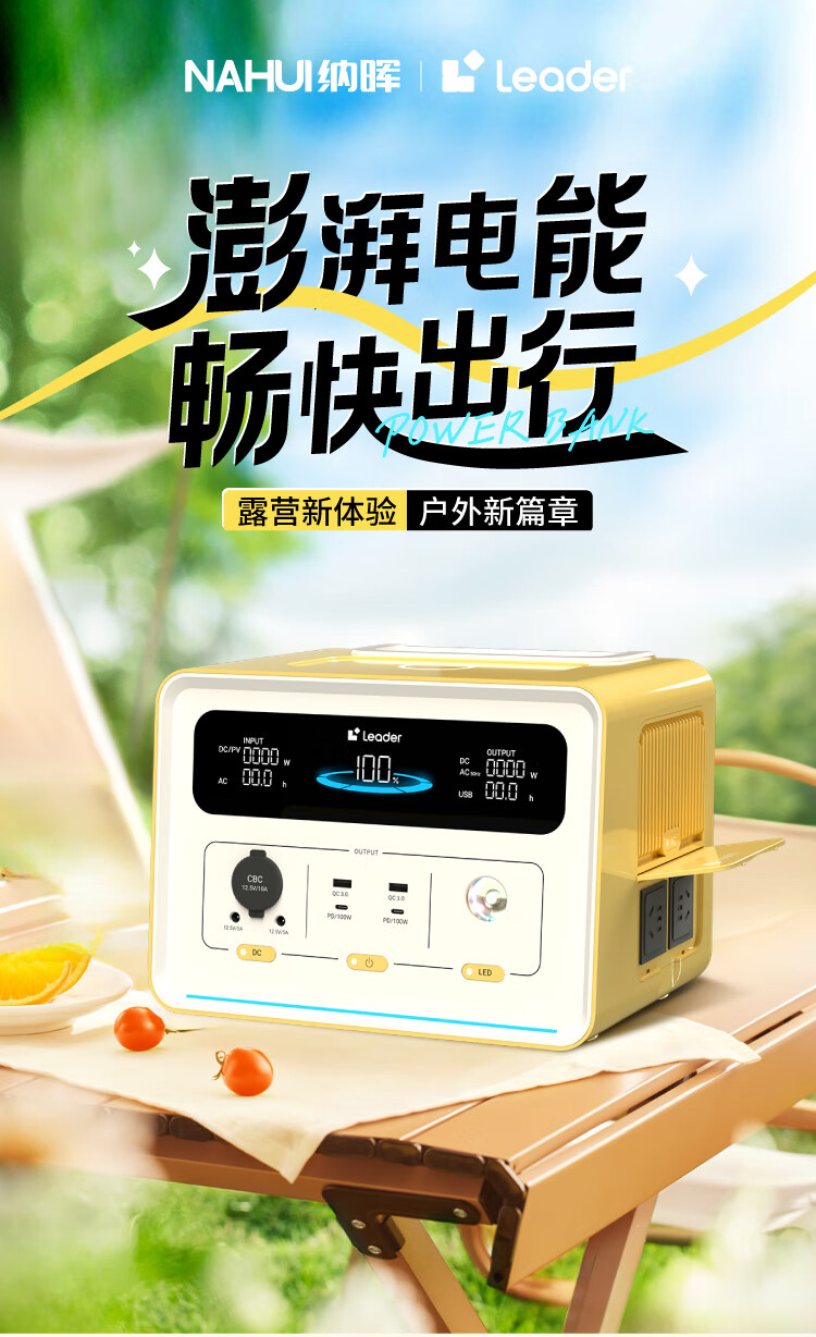 纳晖Leader1200W大功率448W大容量移动储能电源自驾车载停电应急露营 600W448Wh送100W太阳能板