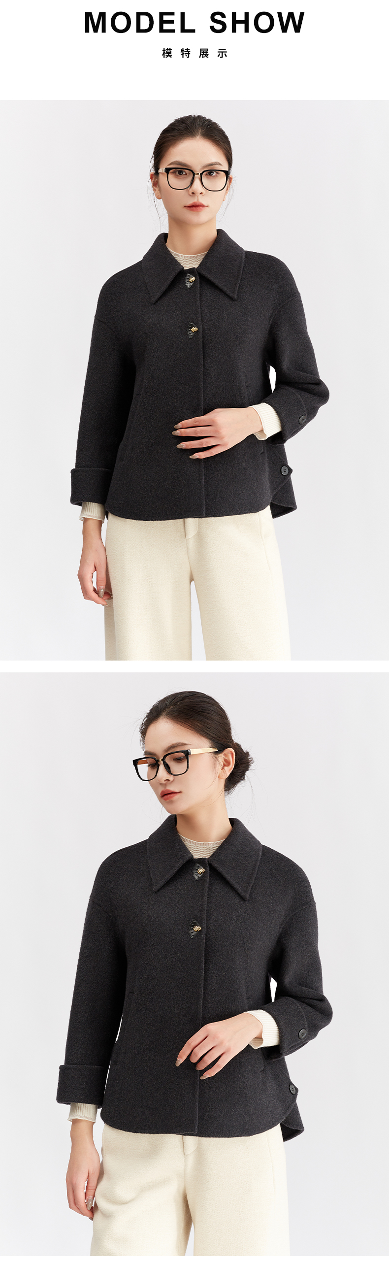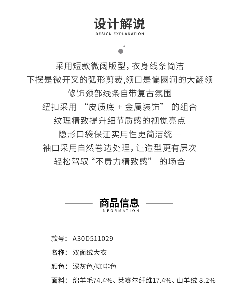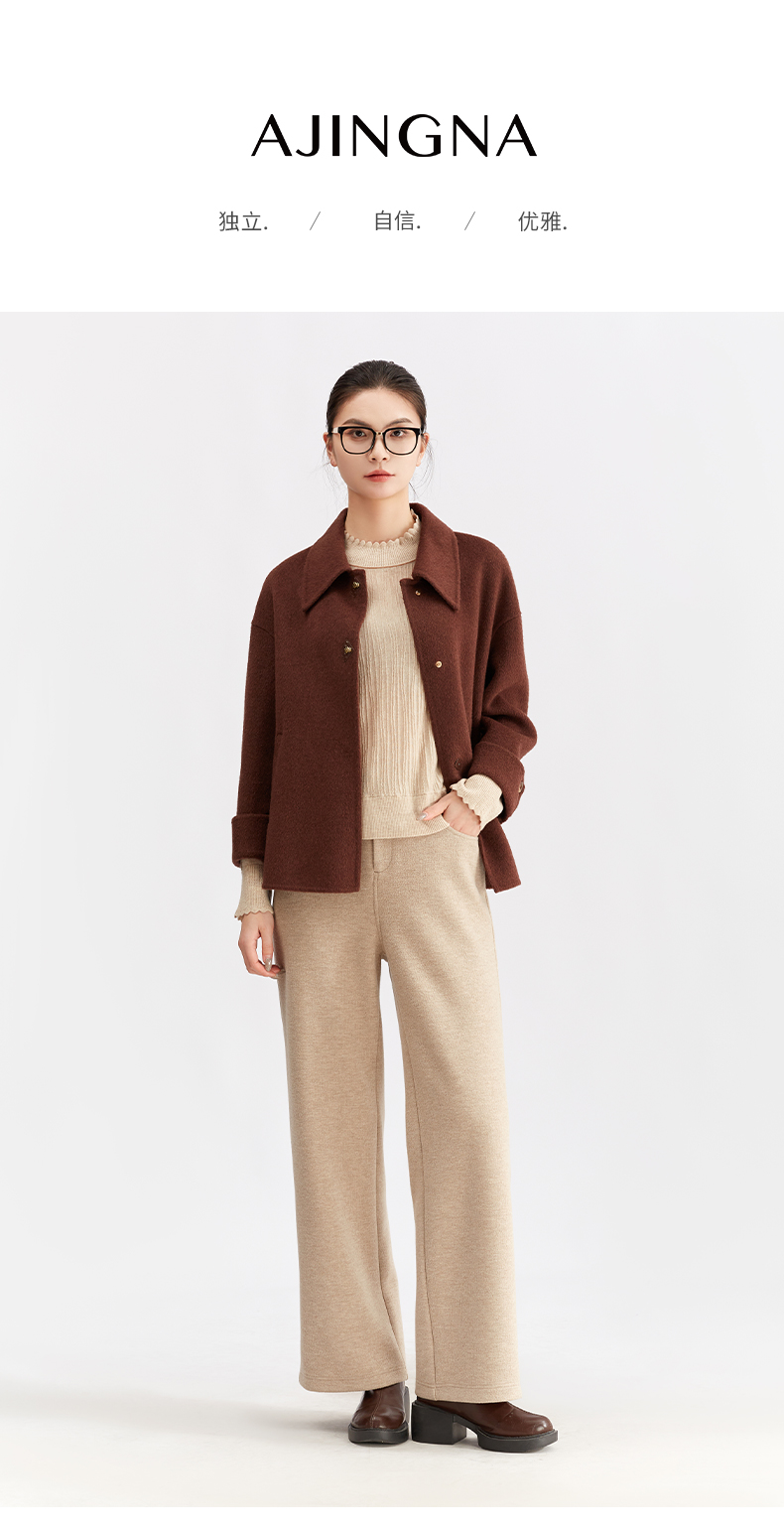 【商场同款】阿菁娜冬季新款复古大翻领短外套微阔版型A30D511029