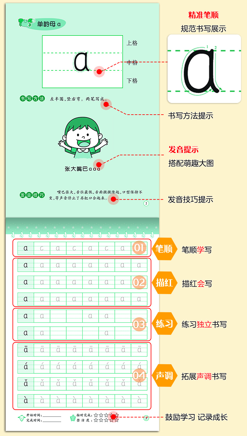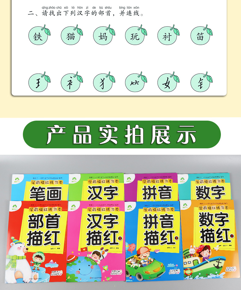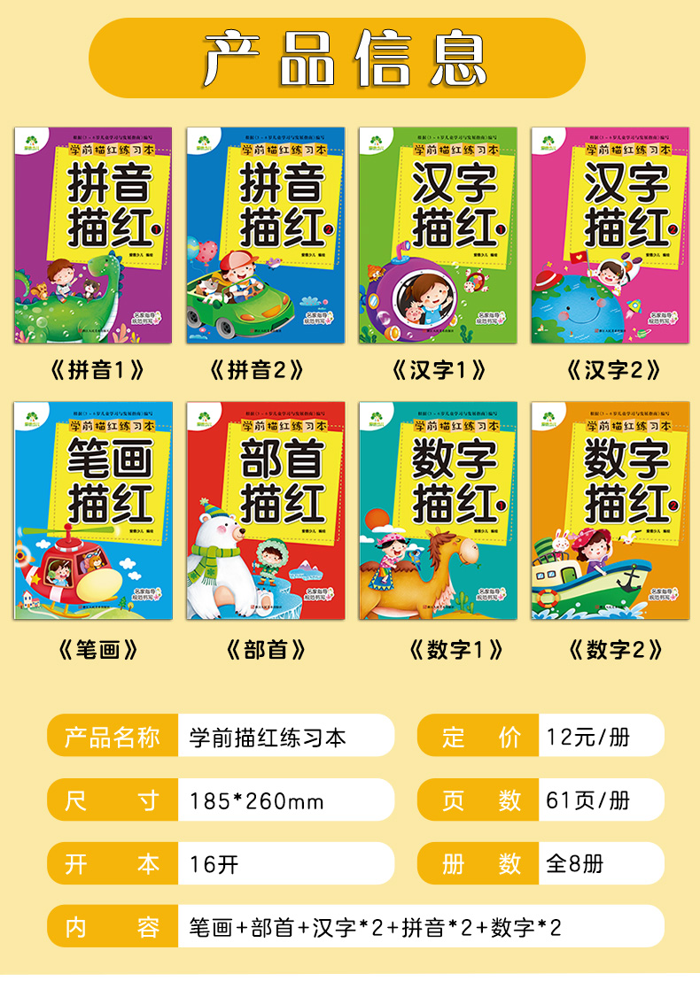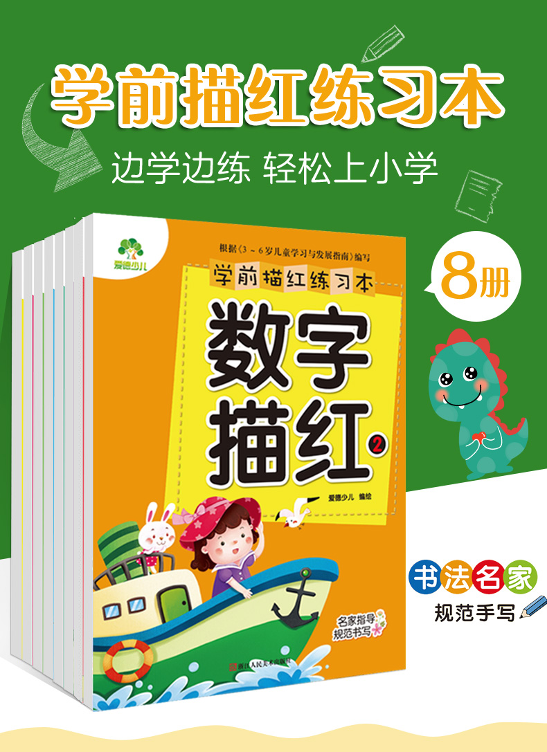 爱德少儿 学前描红练习本 全8册幼儿园拼音数字笔画描红练字帖笔顺练习本