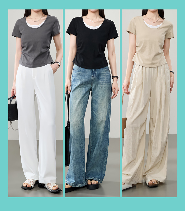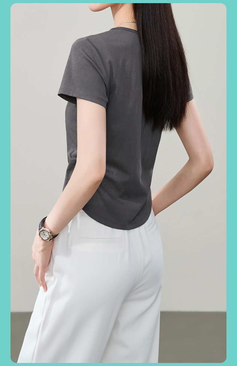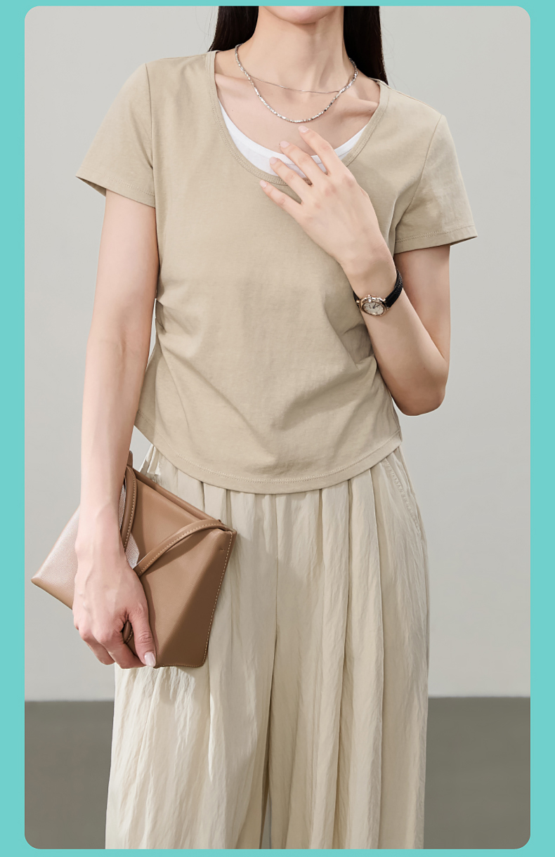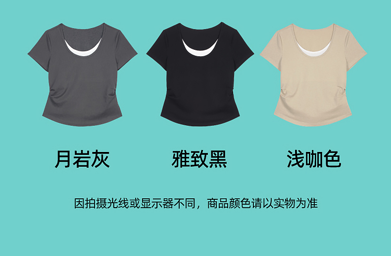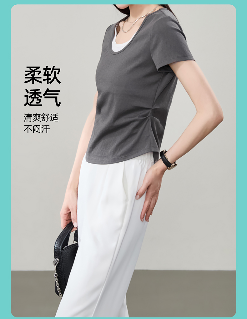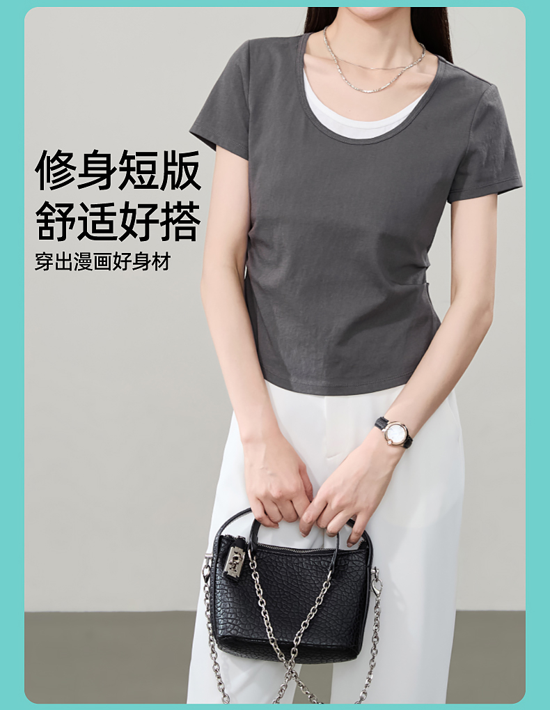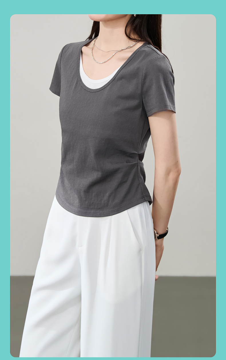 【假两件U领短袖T恤】逸阳夏新款正肩撞色修身显瘦打底衫5158