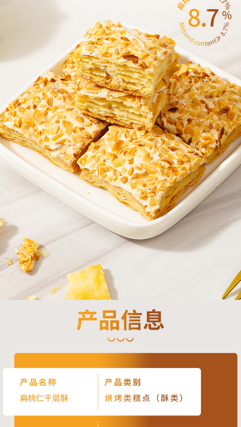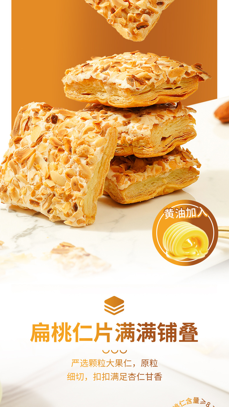 【秒杀❗️19.9抢2盒🔥扁桃仁千层酥】现做现发,甄选黄油、扁桃仁,小麦粉、鸡蛋和巴氏杀菌鲜牛乳,只为一口香浓酥脆!商超市同款酥脆下午茶糕点饼干网红休闲办公零食