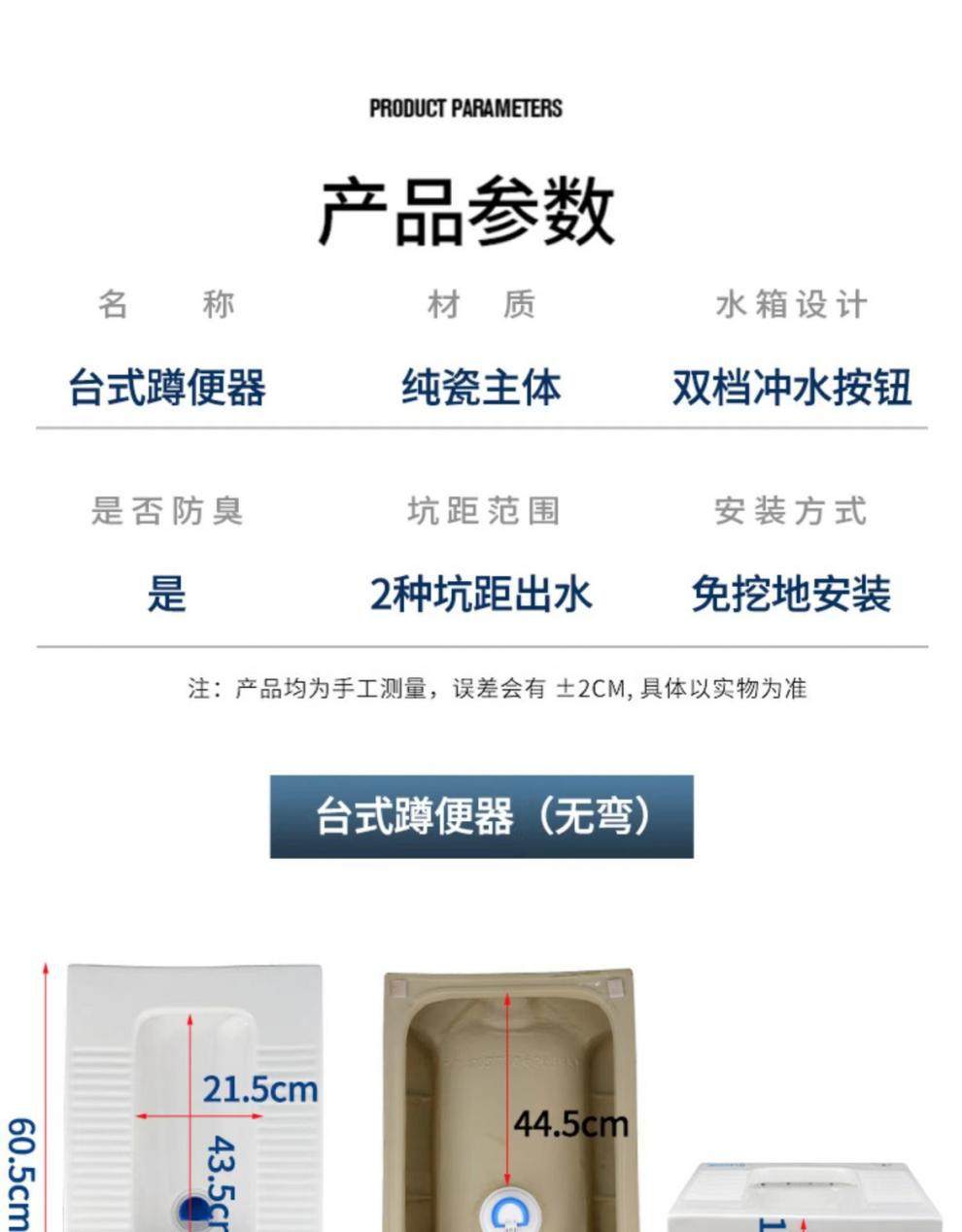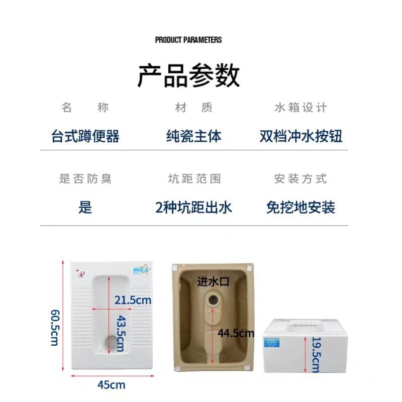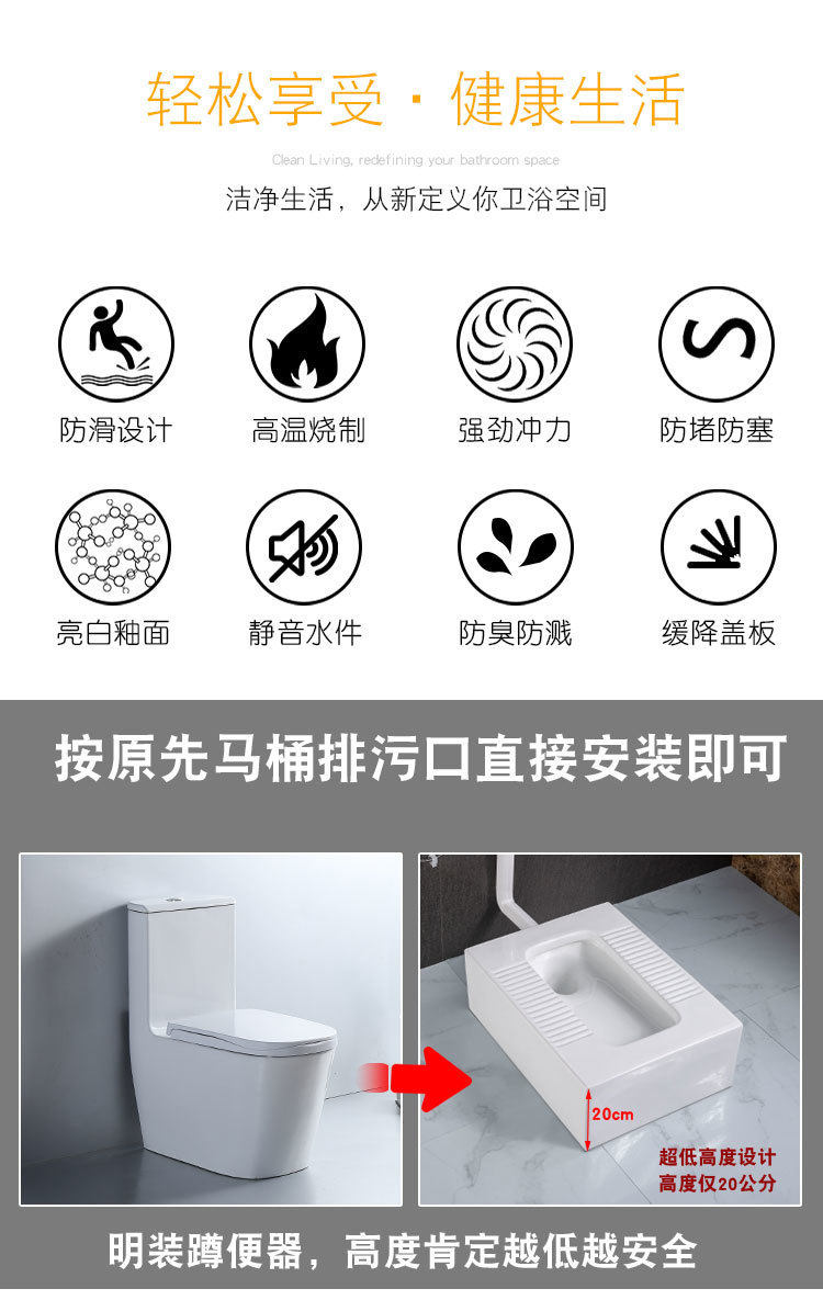 免台式明装一体式防臭免砌蹲厕陶瓷便器蹲明装挖坑加宽台