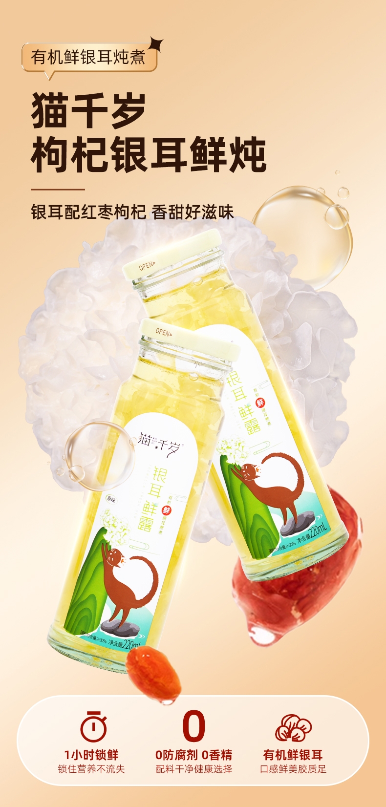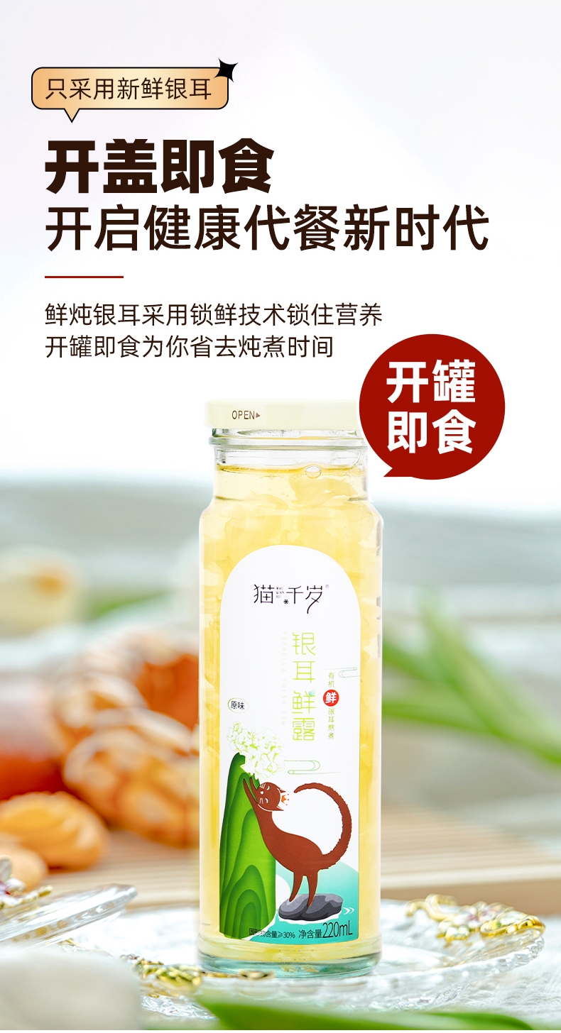 猫千岁鲜炖银耳鲜露免冲泡即食有机鲜银耳鲜炖