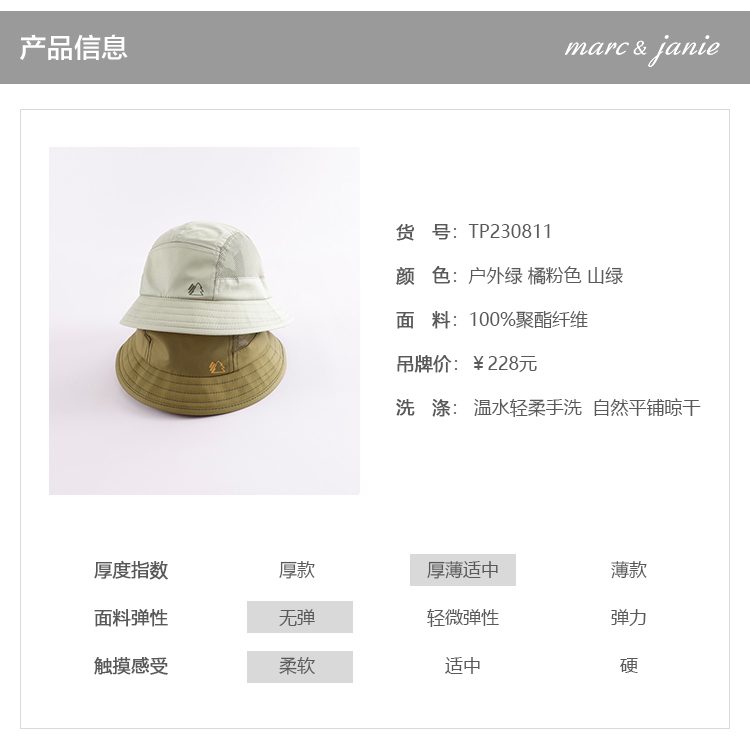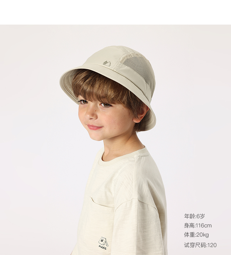 马克珍妮夏装 男女童户外风网面拼接遮阳渔夫帽230811