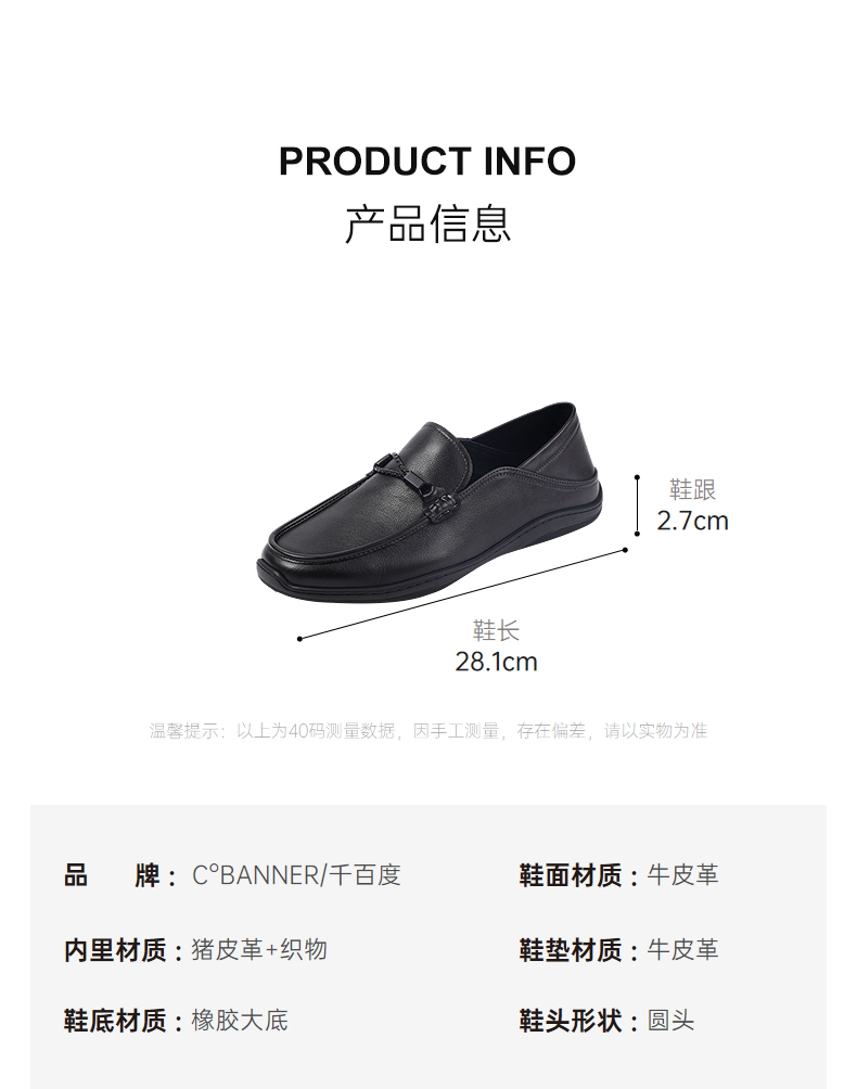 4楼千百度2025秋季舒适低跟强韧橡胶大底得体乐福鞋男鞋A25407221