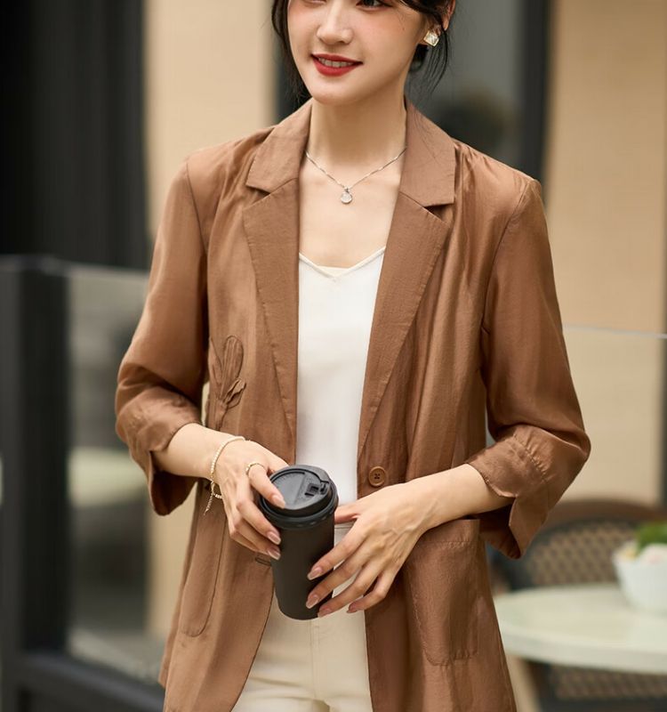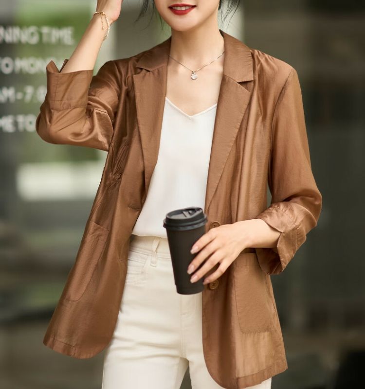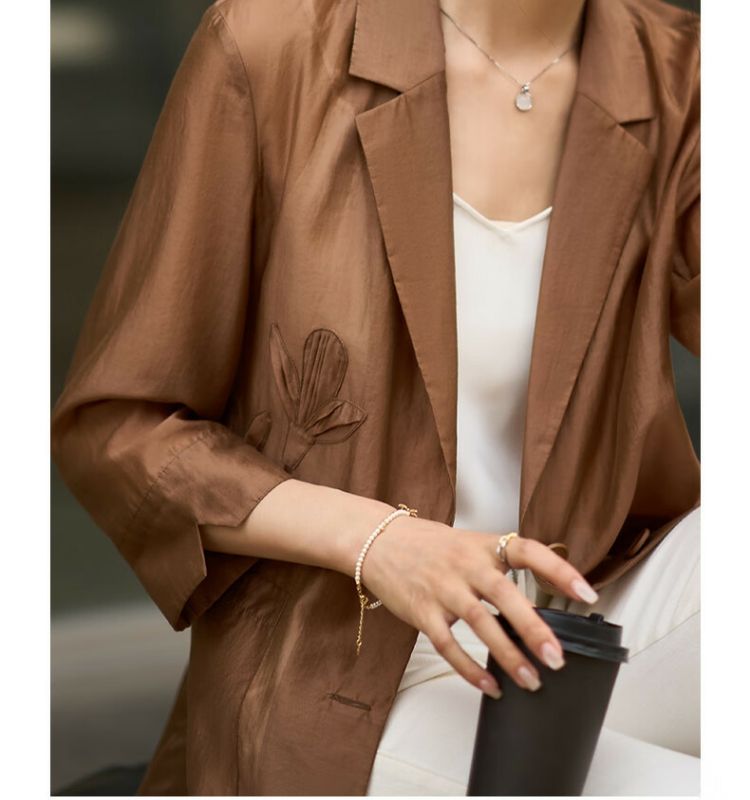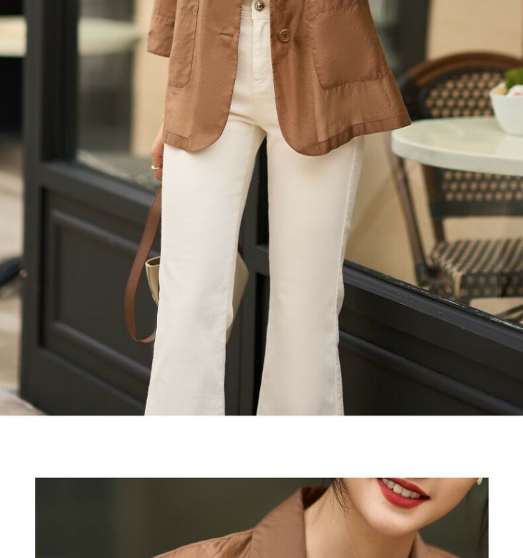 米思阳2024秋季新款简约通勤风时尚衬衫休闲宽松七分袖上衣女0559