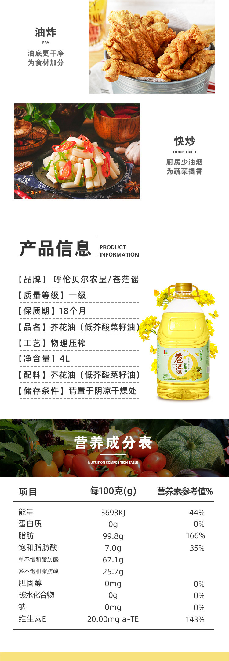 【中国农垦】苍茫谣压榨一级芥花油4L