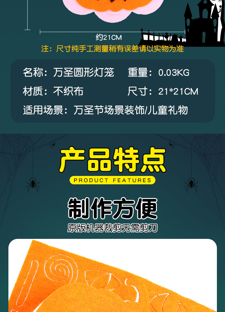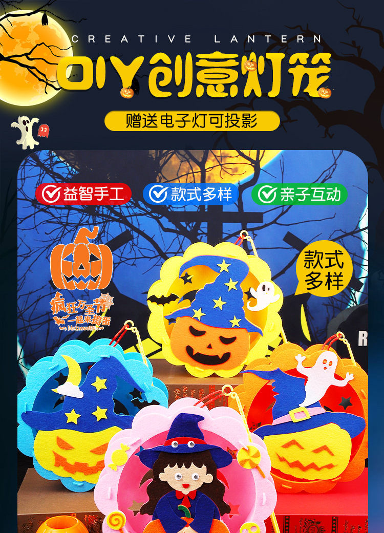 【万圣节南瓜灯】万圣节南瓜灯diy儿童手工礼物材料包卡通幼儿园装饰发光手提灯笼
