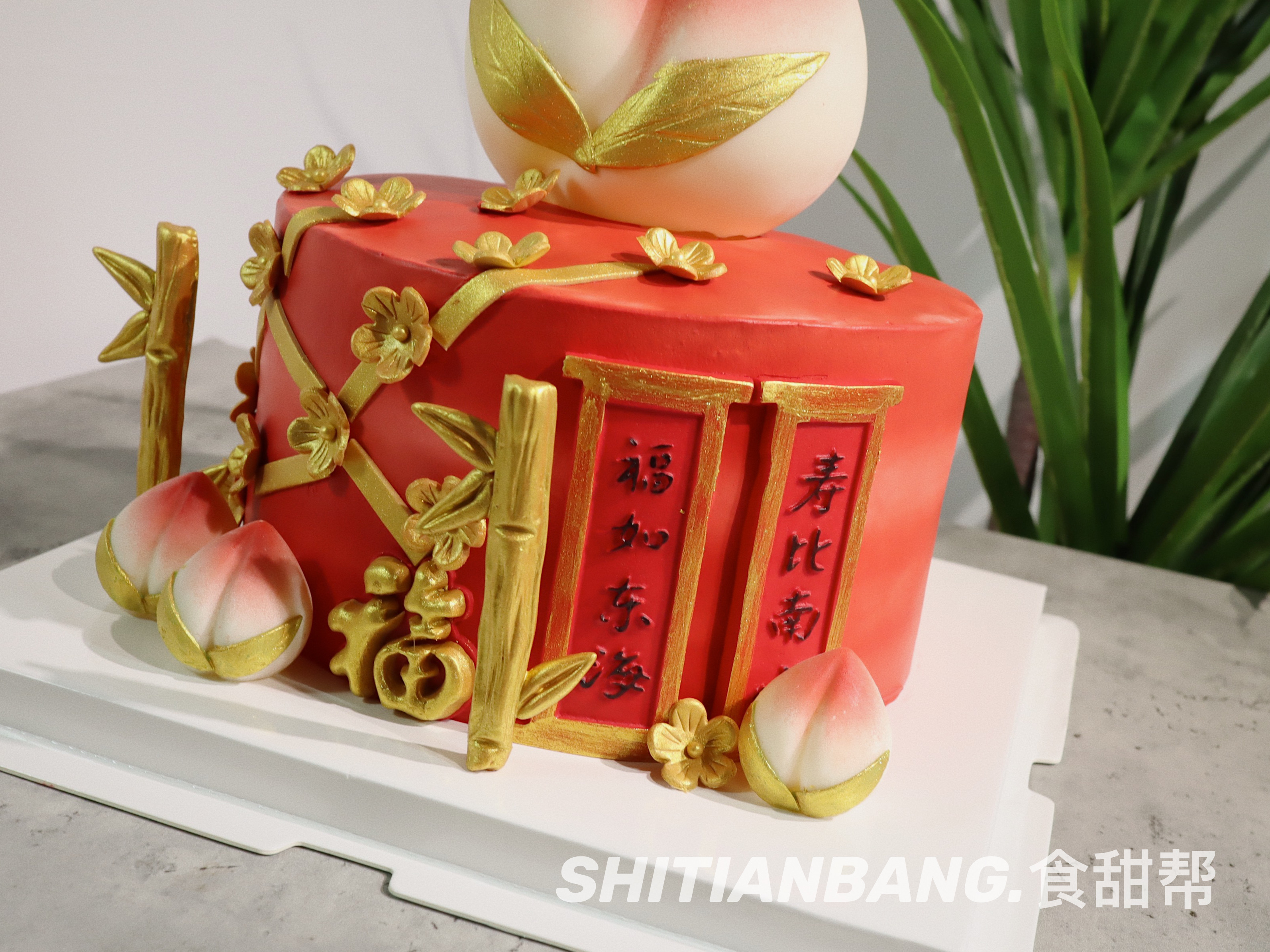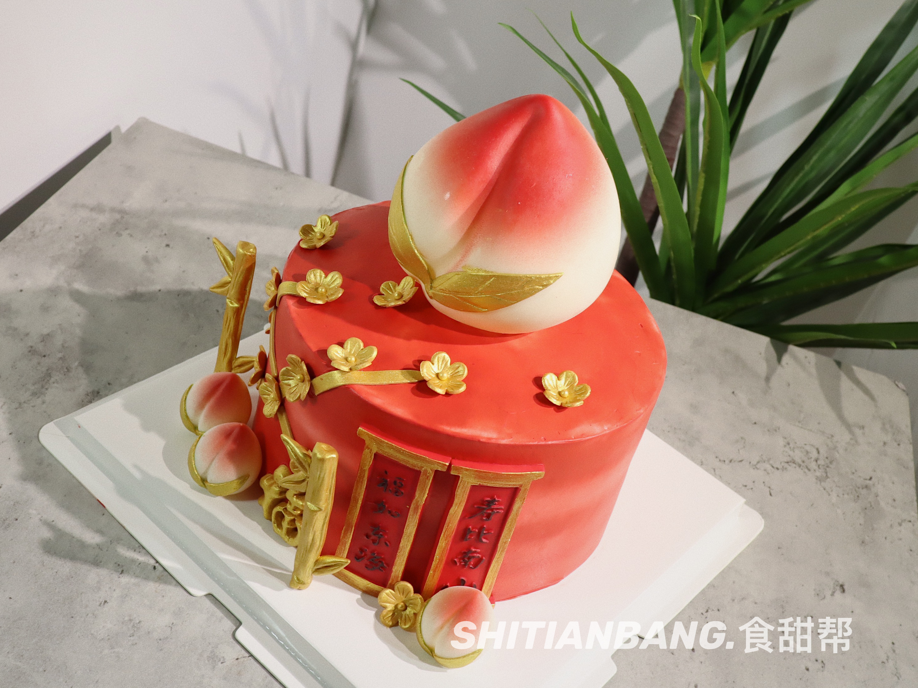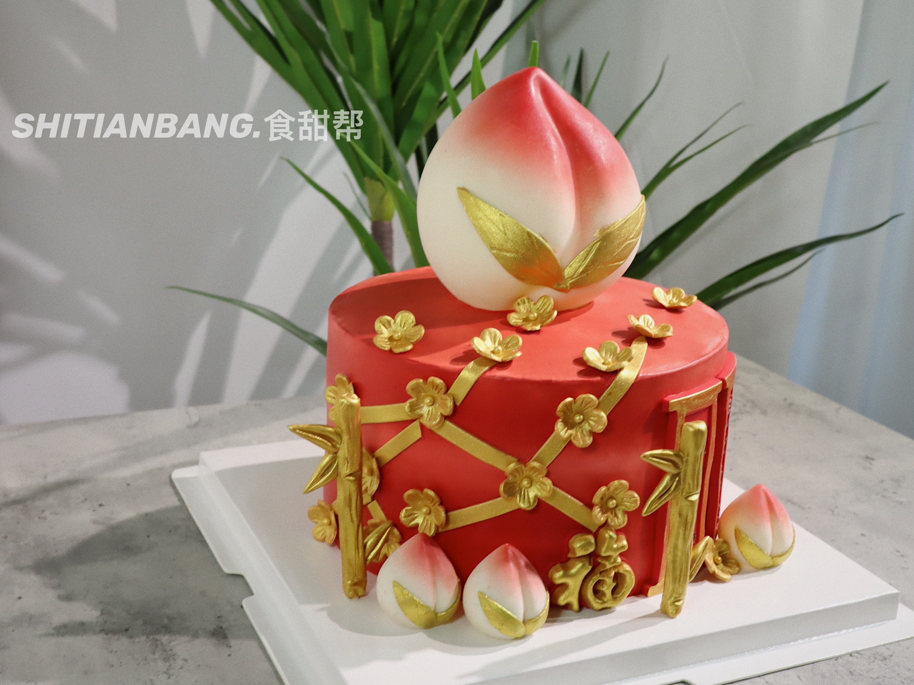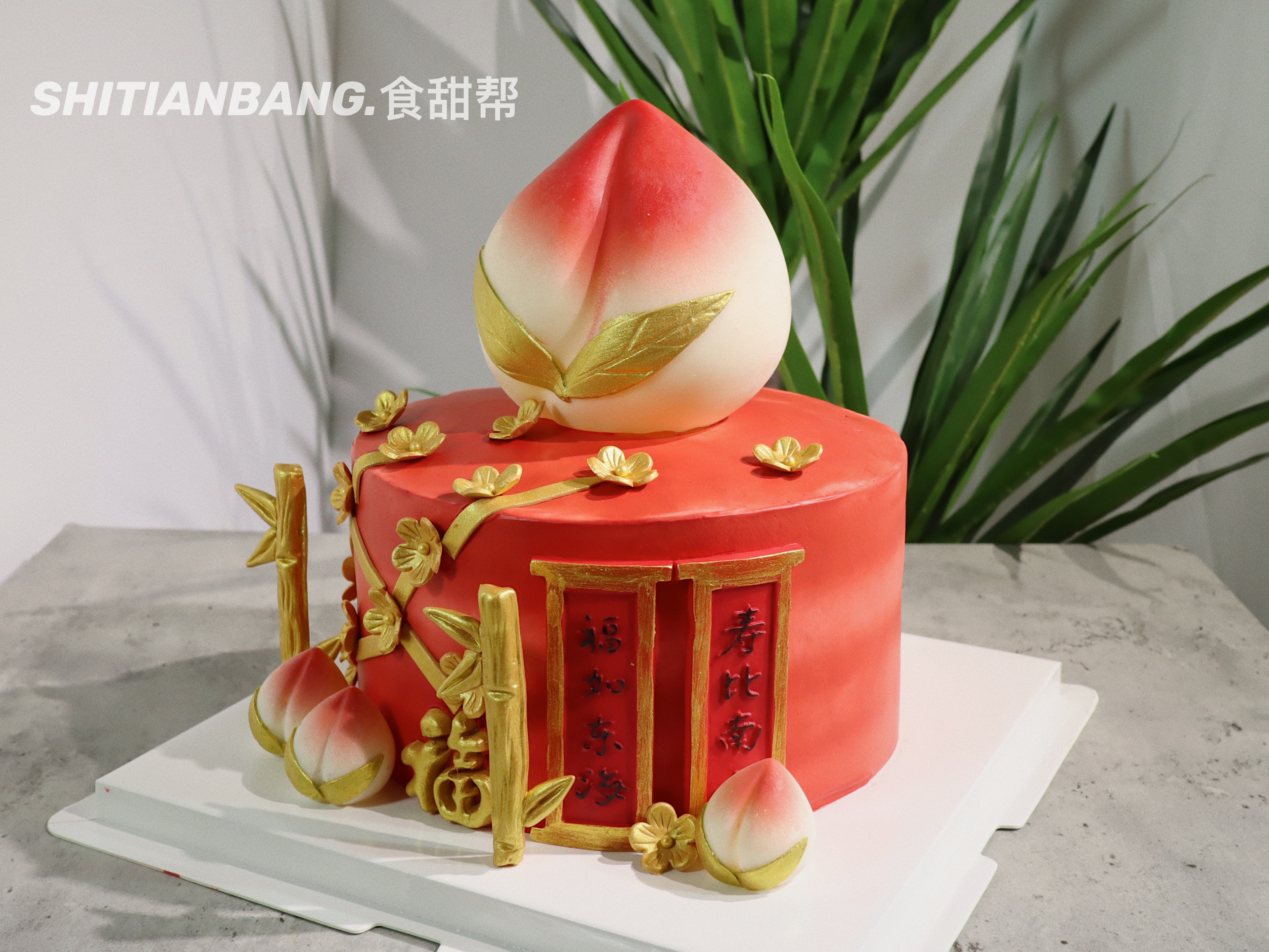 蛋糕表面装饰寿桃是巧克力做的哦!