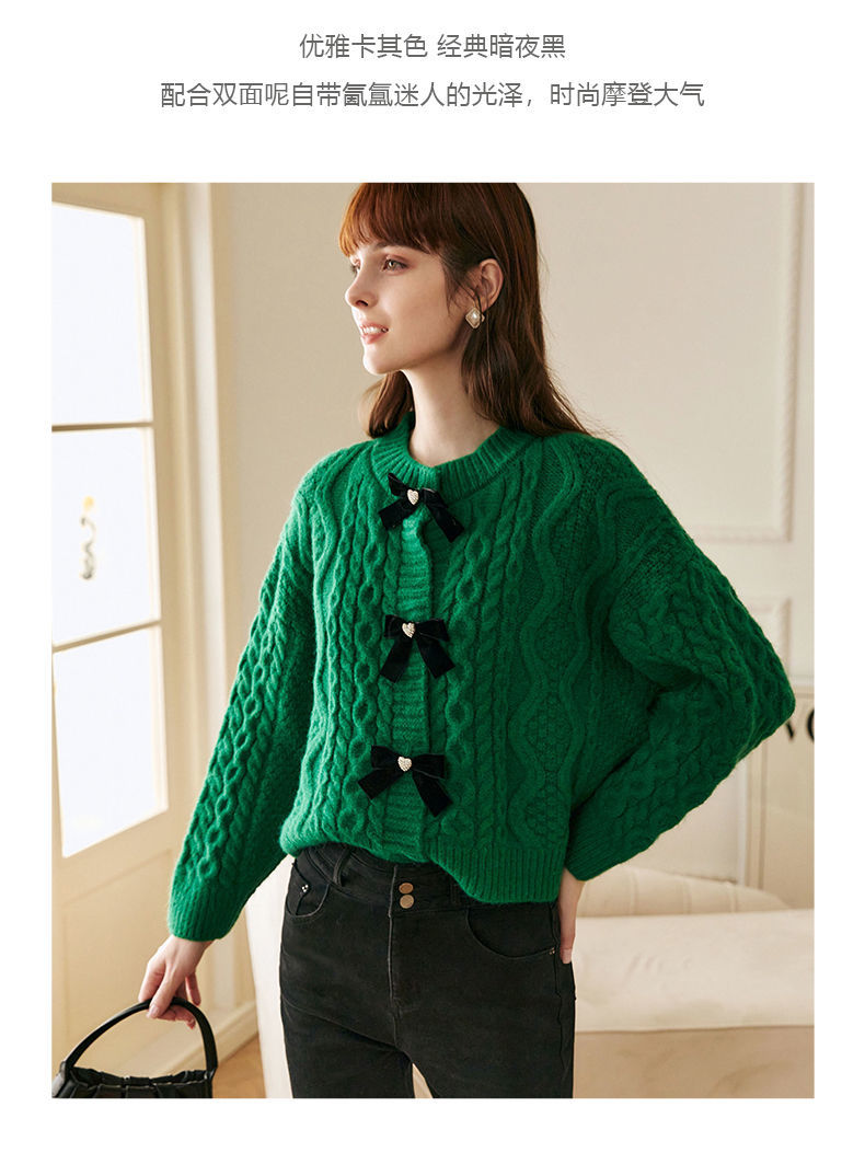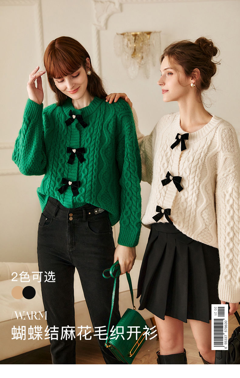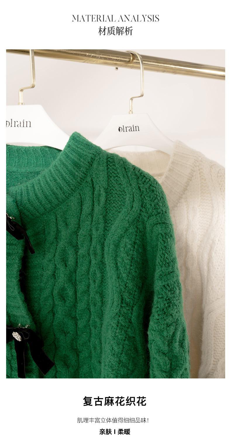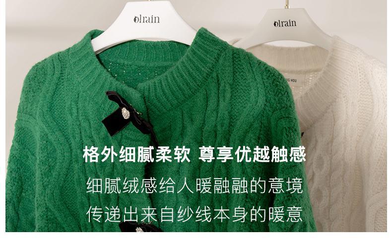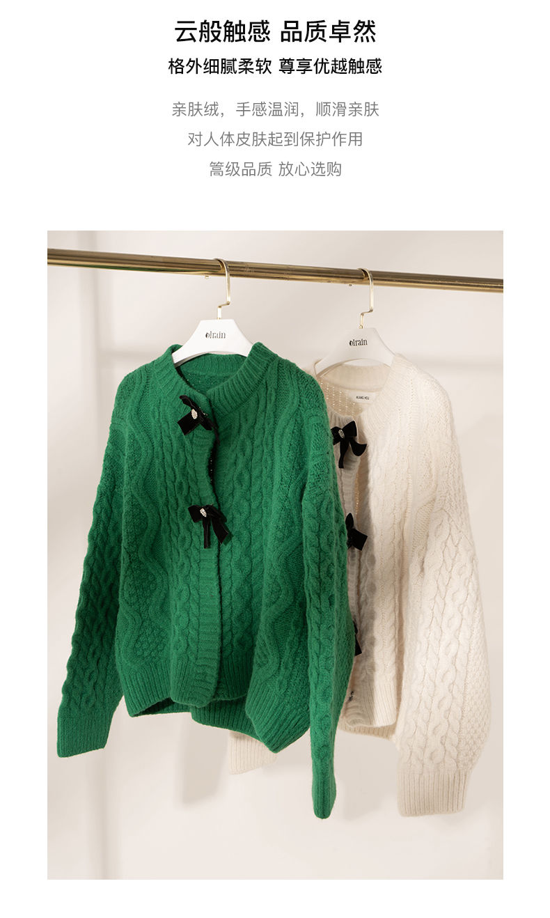 欧芮儿开衫毛衣外套女秋冬新款2021宽松显瘦时尚复古针织麻花上衣