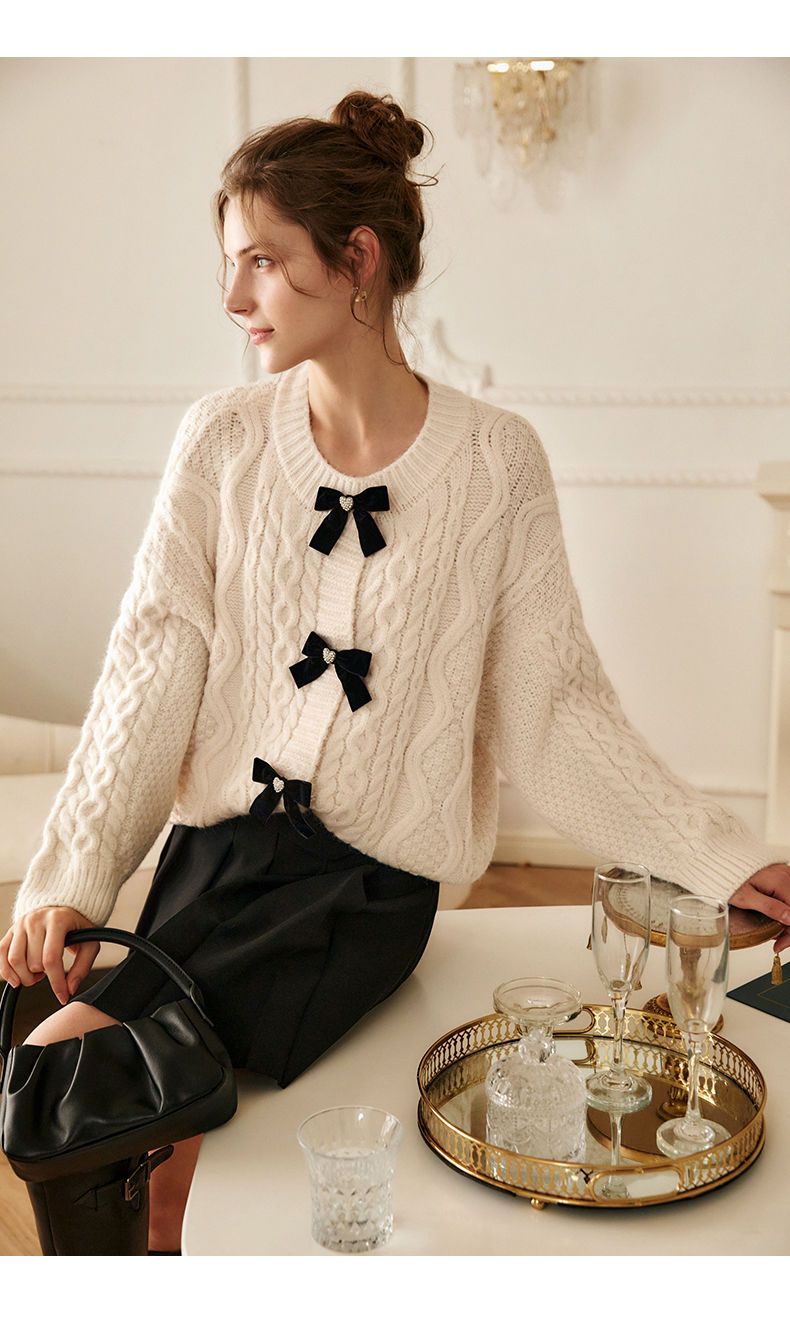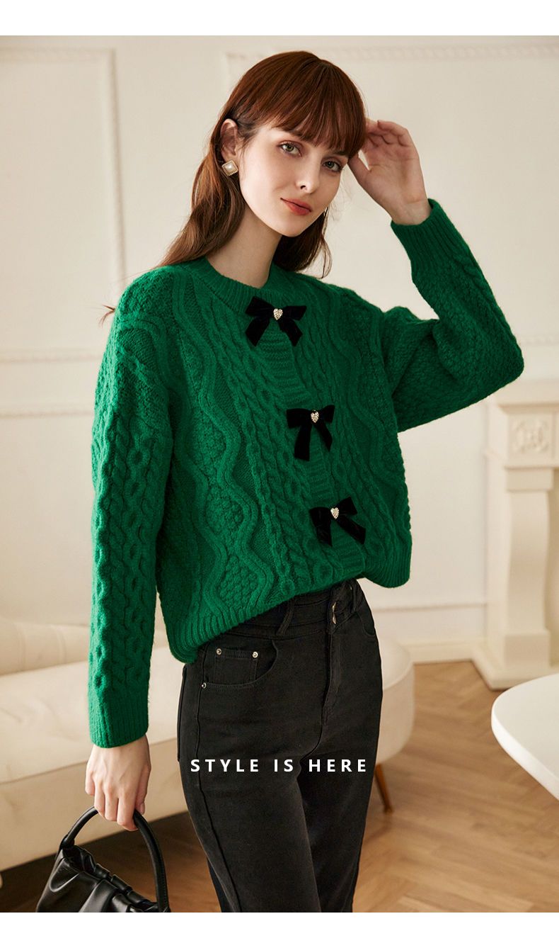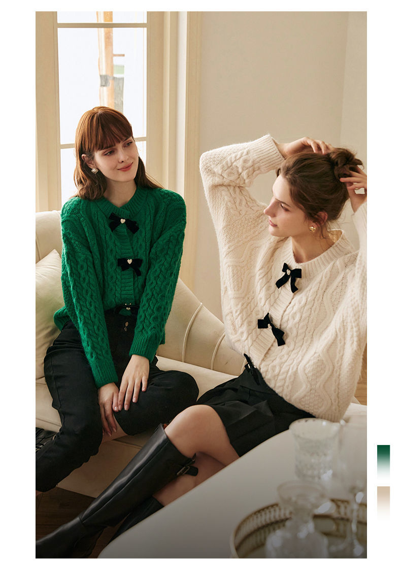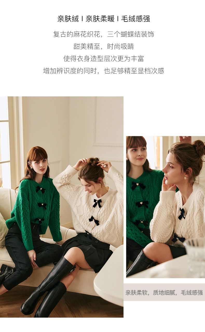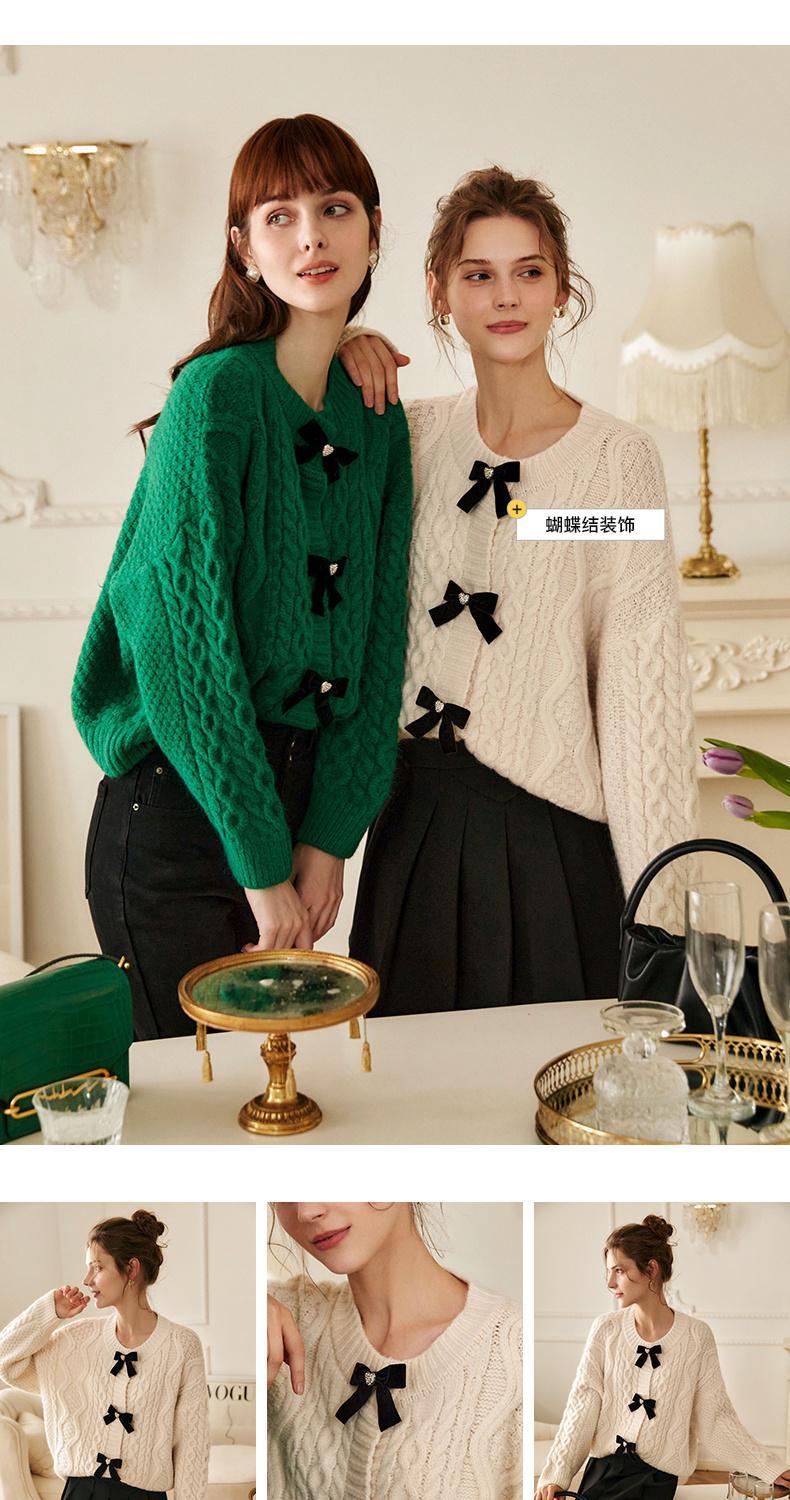 欧芮儿开衫毛衣外套女秋冬新款2021宽松显瘦时尚复古针织麻花上衣