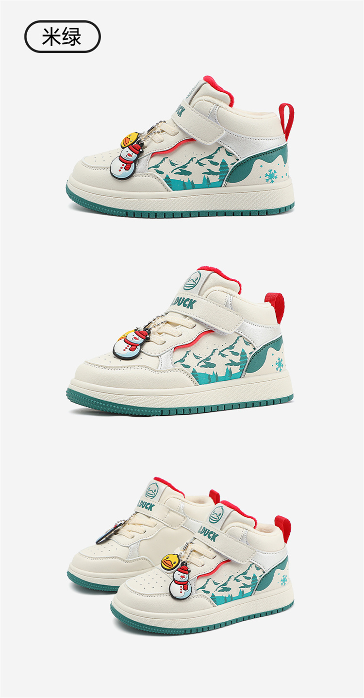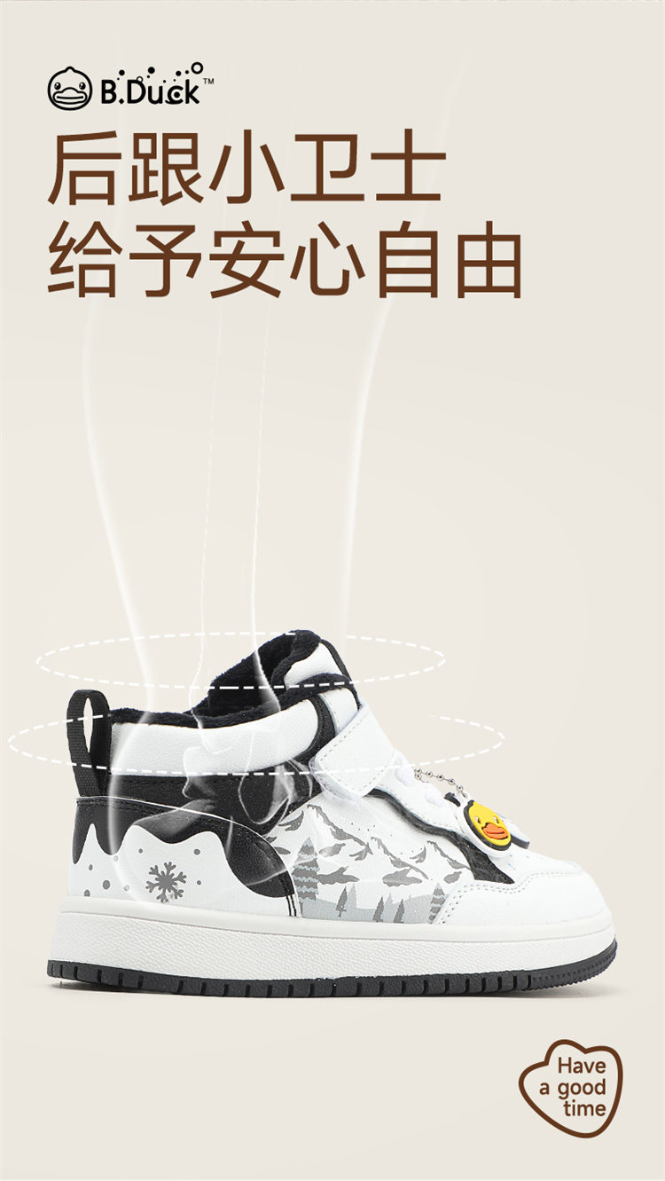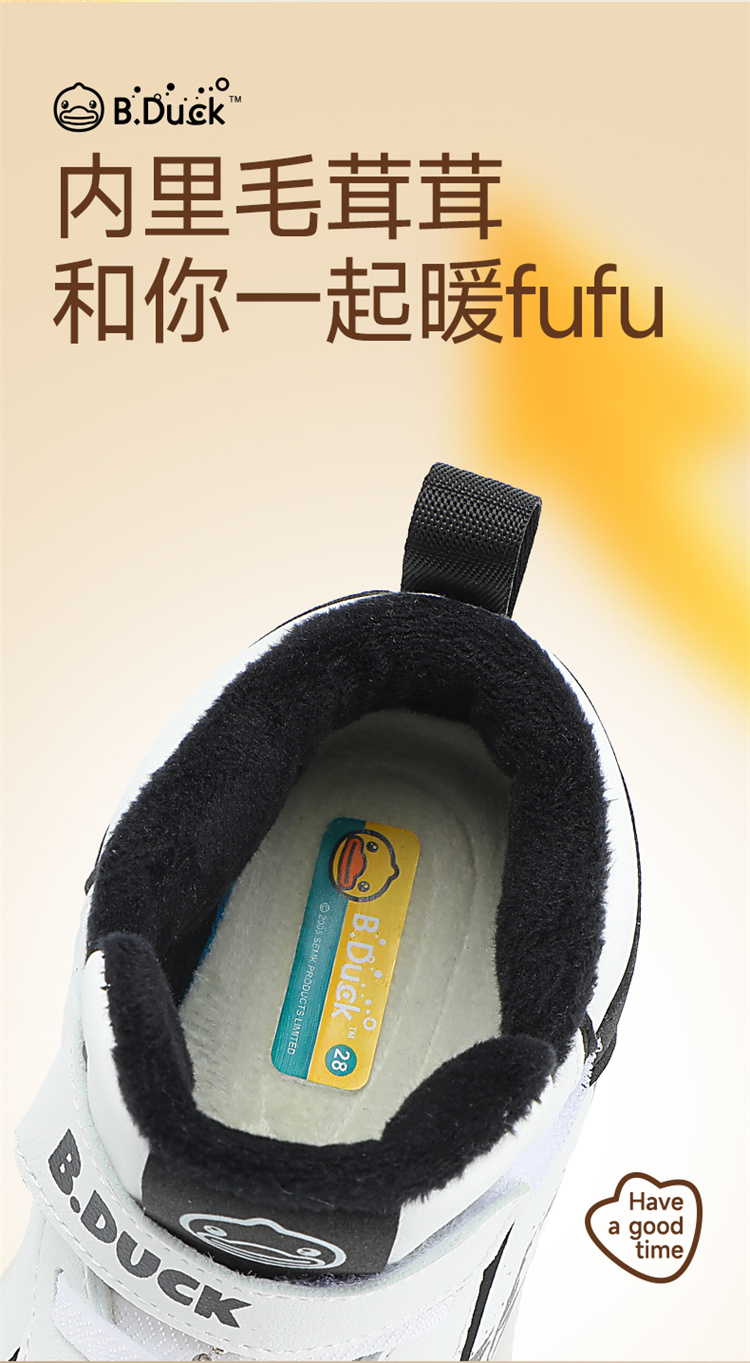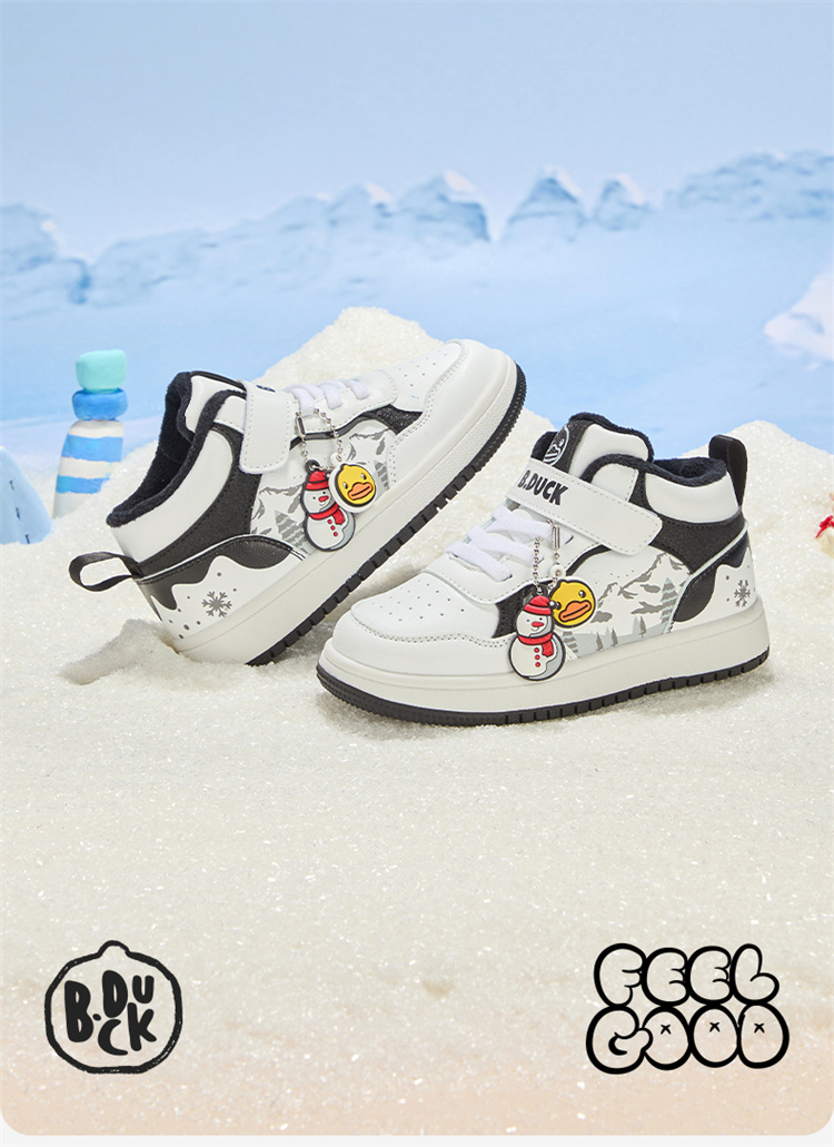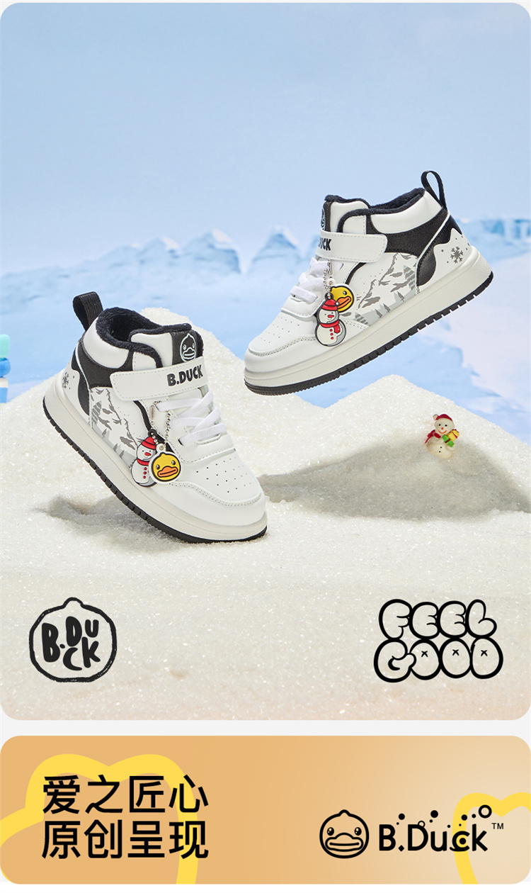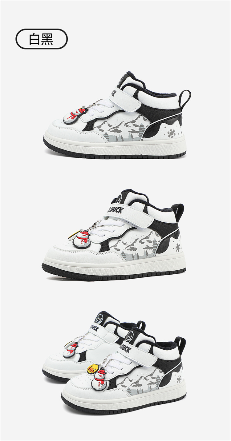 B.Duck小黄鸭童鞋卡通挂件高帮板鞋冬季男女童加绒26-30 B5586835