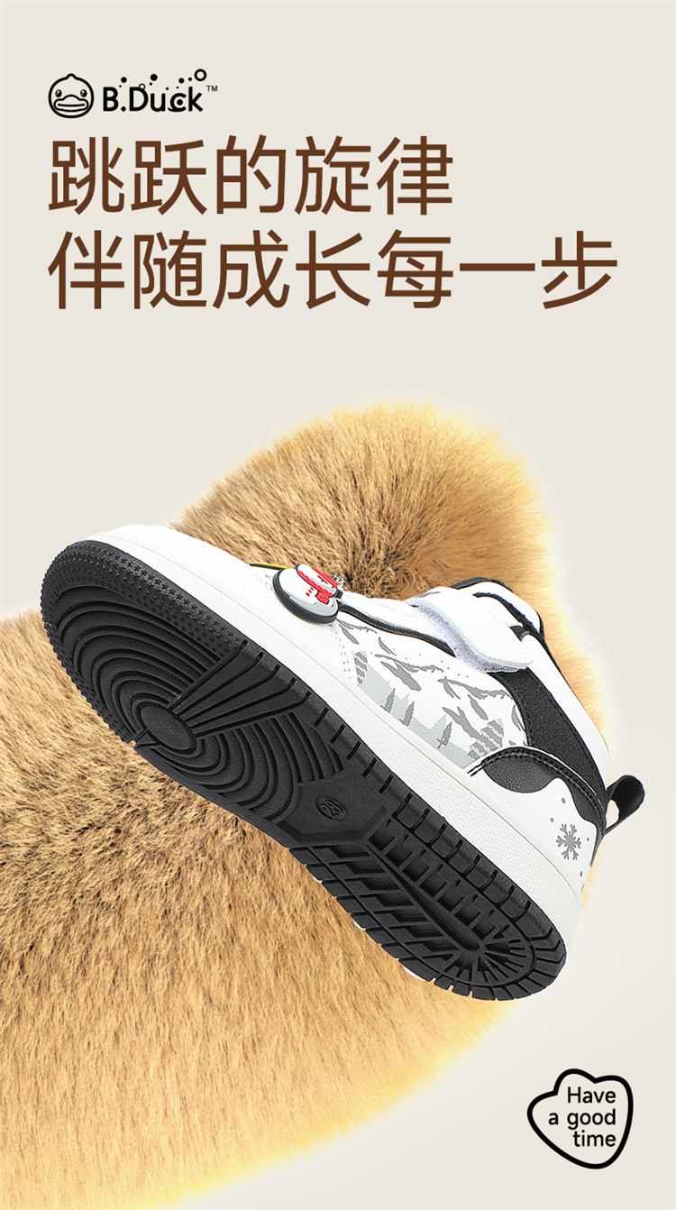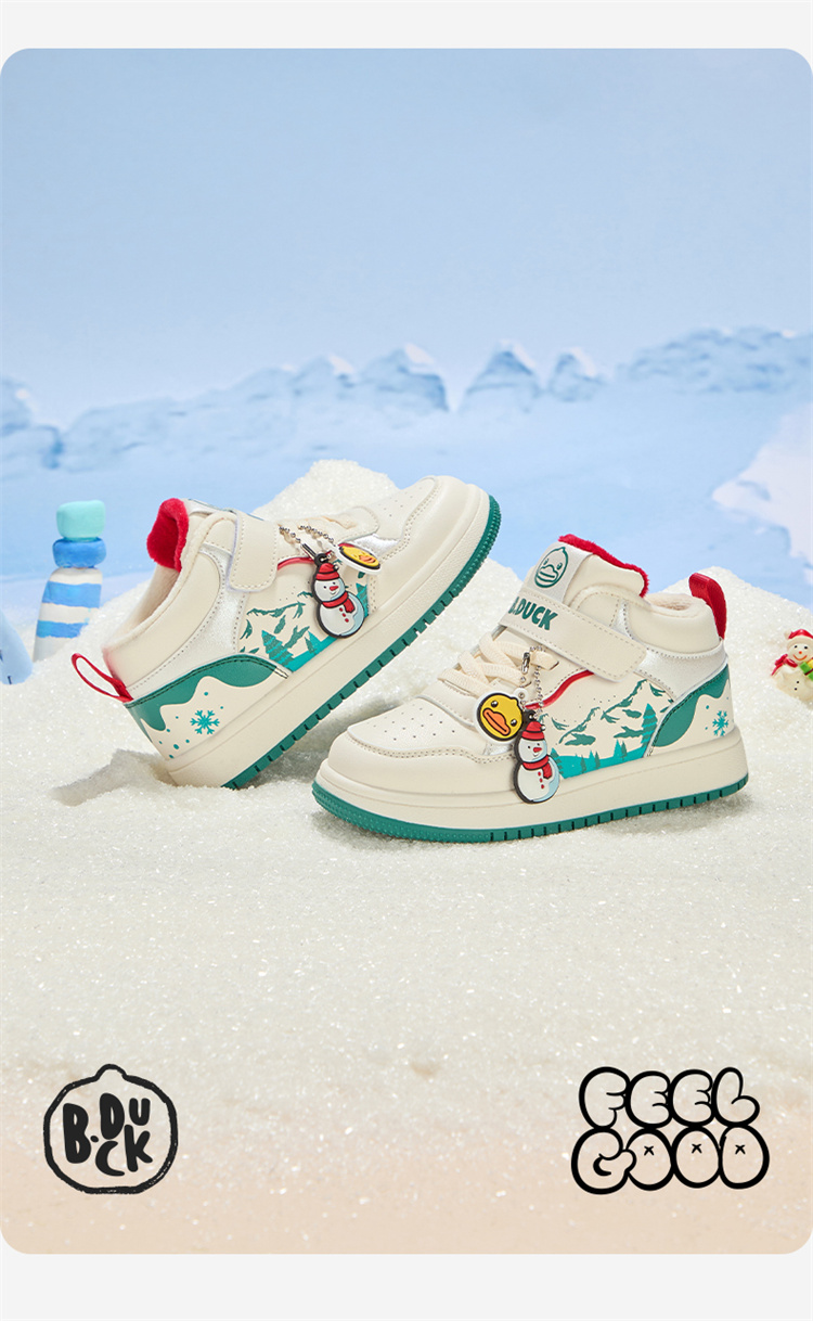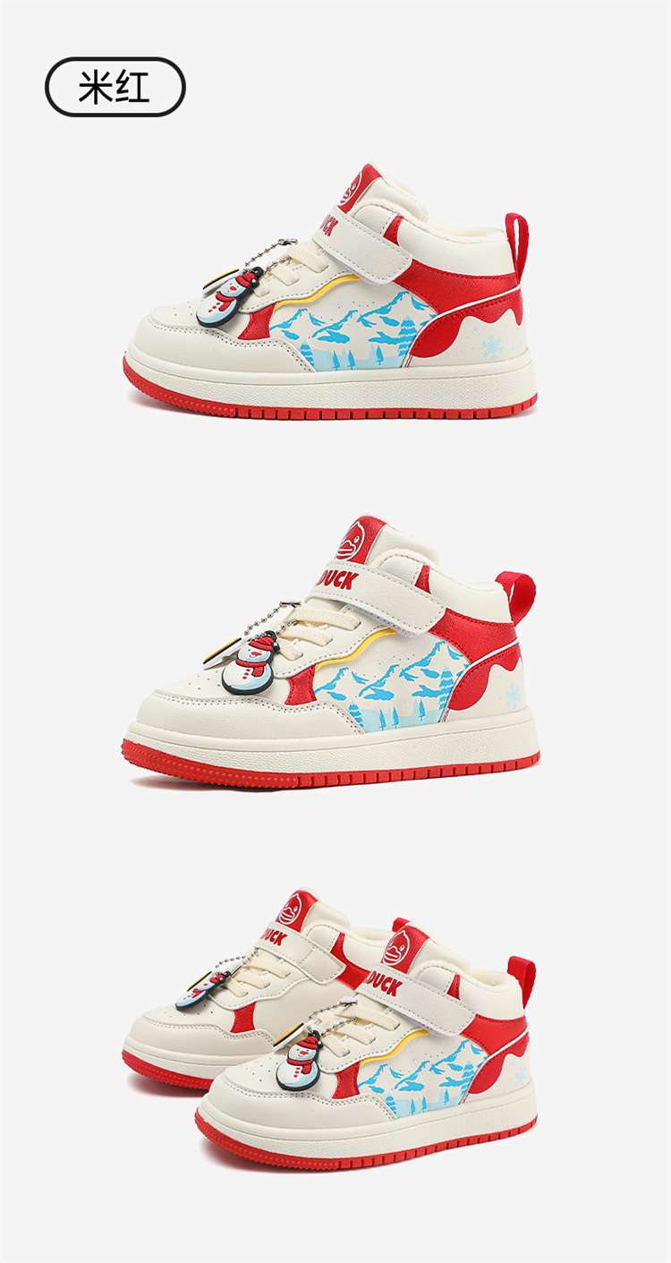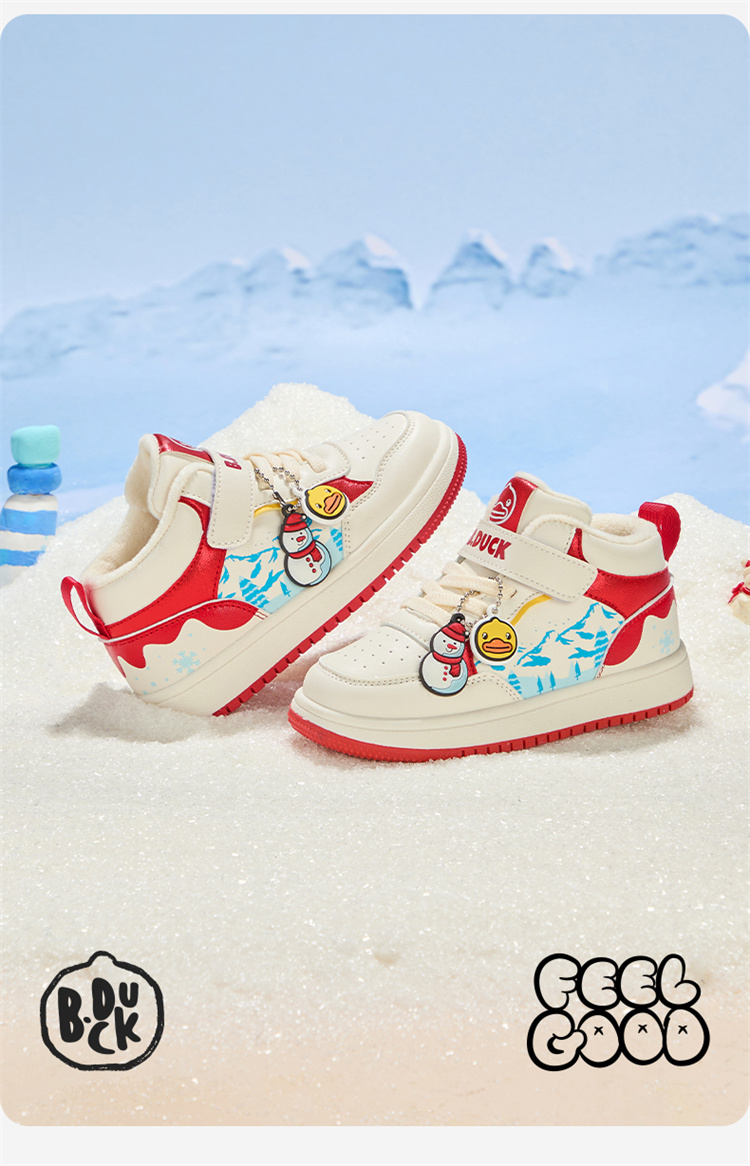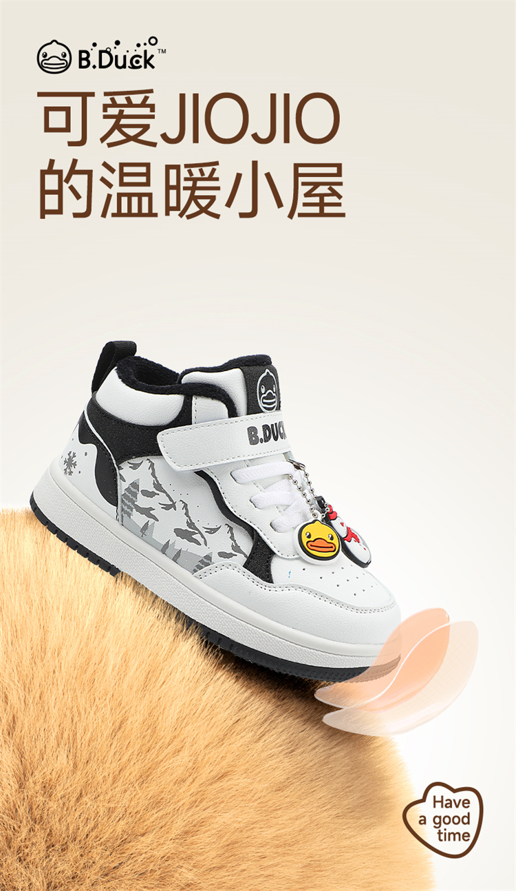 B.Duck小黄鸭童鞋卡通挂件高帮板鞋冬季男女童加绒26-30 B5586835