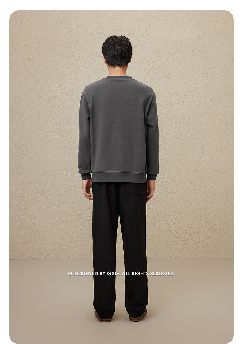 GXG男装【100%棉】秋季简约百搭舒适休闲打底衫男式圆领长袖t恤K&C