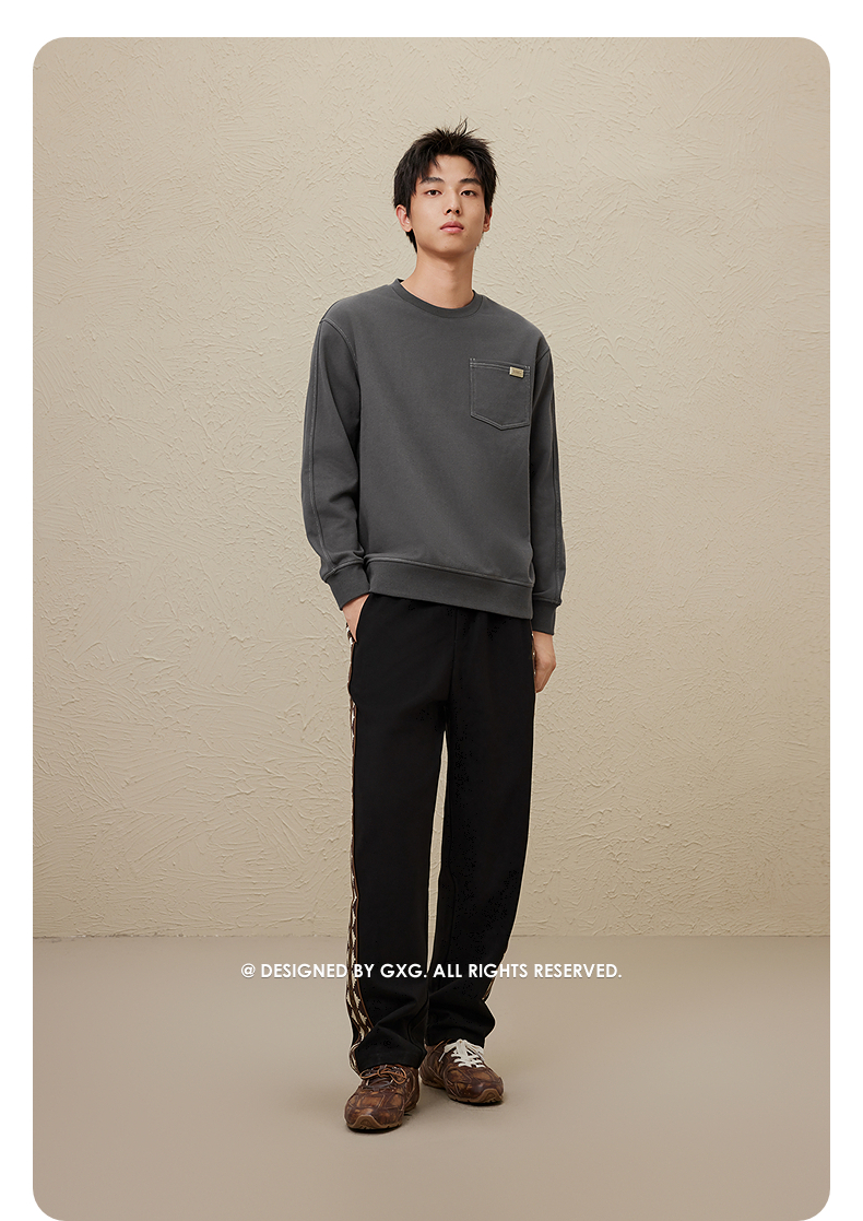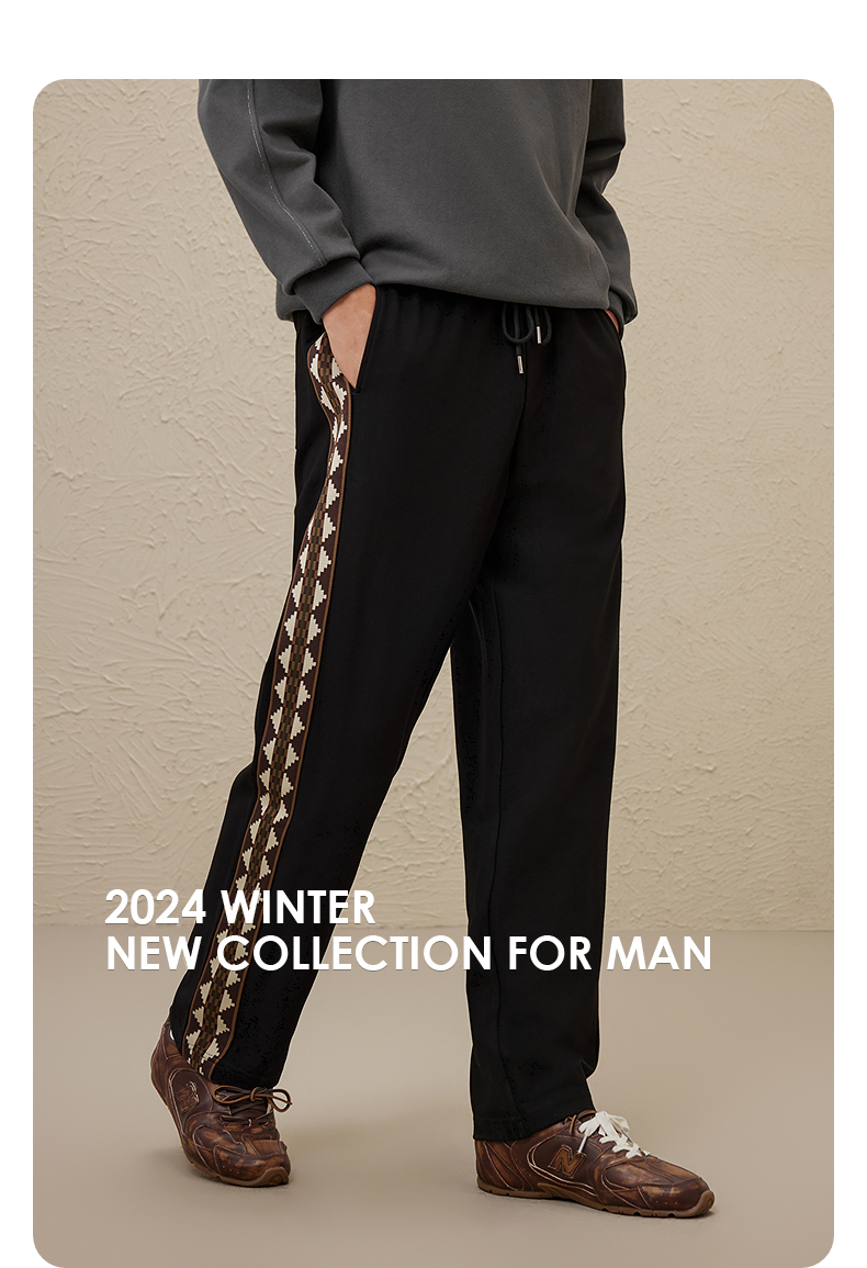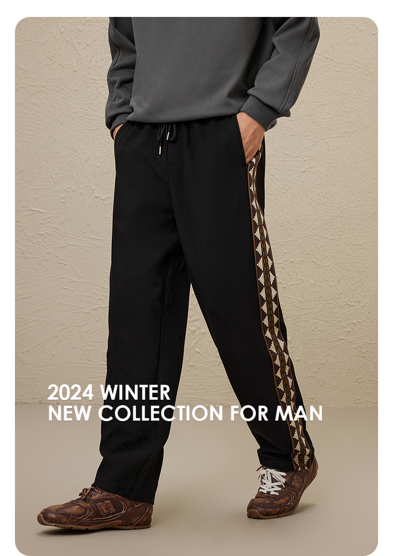 GXG冬季热卖基础休闲撞色宽松阔腿休闲裤长裤男