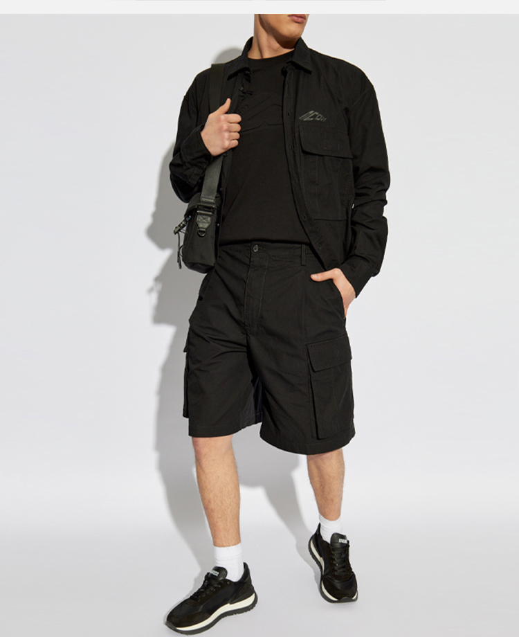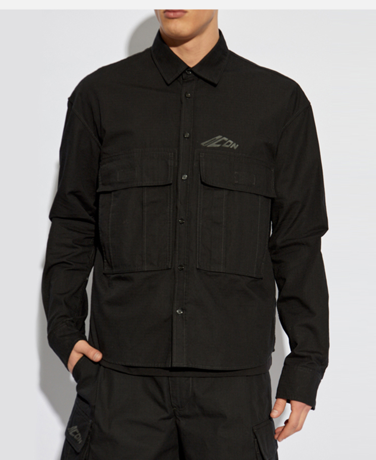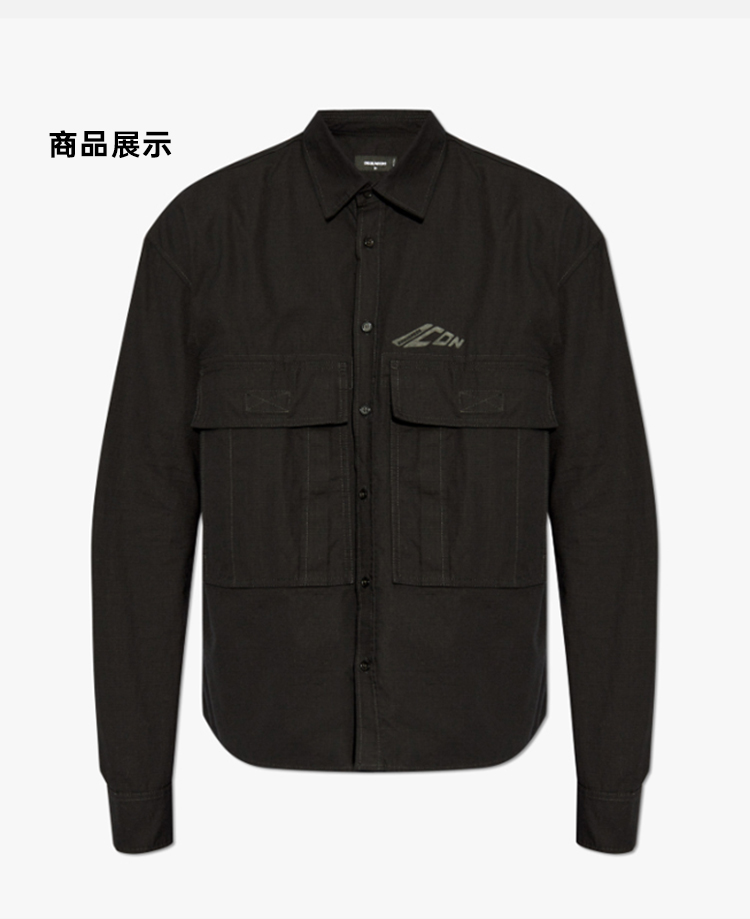 DSQUARED2 男士徽标贴花棉质长袖衬衫 黑色 S79DL0052 D35224 900