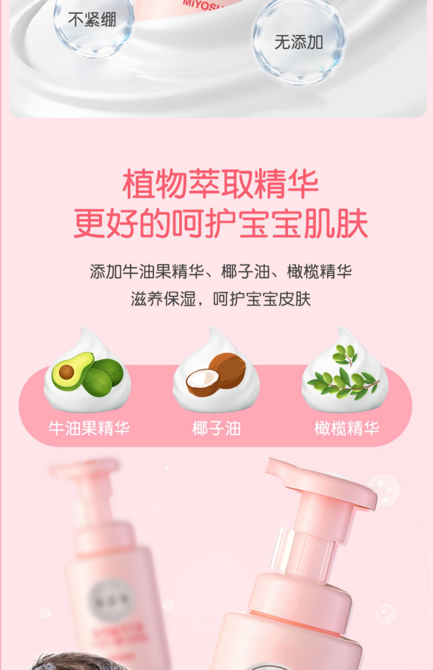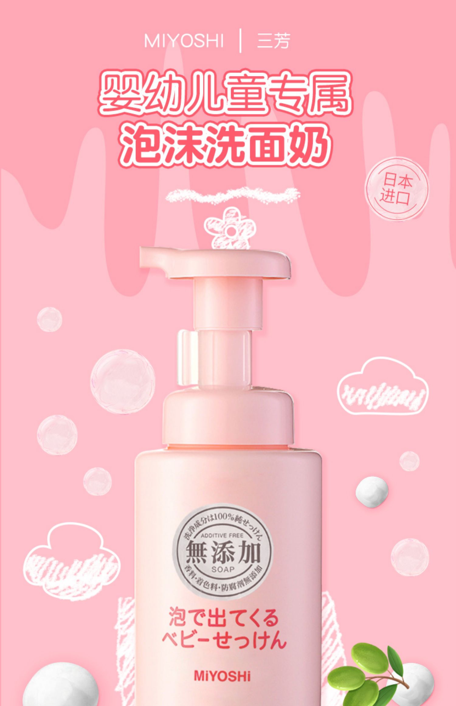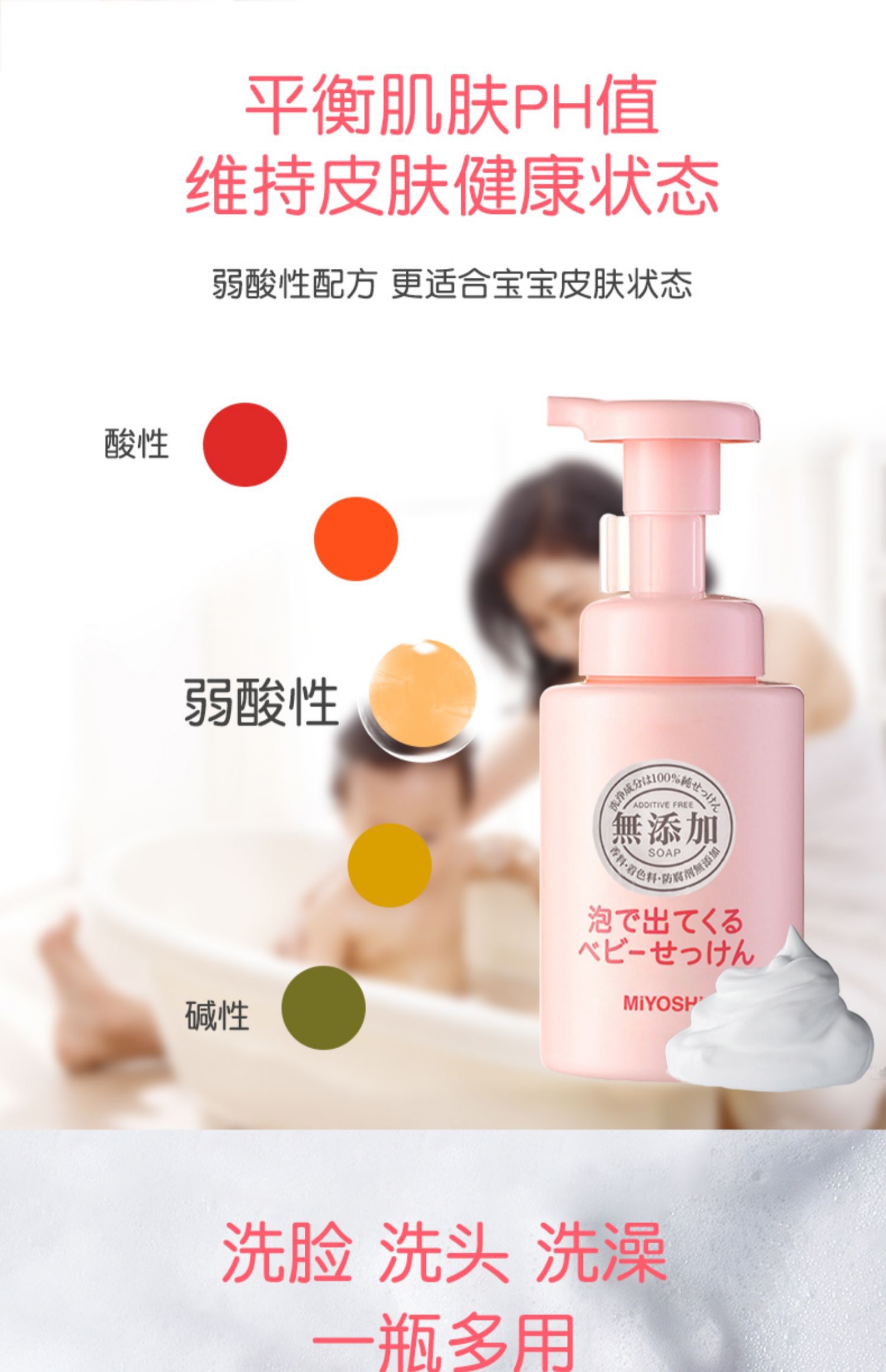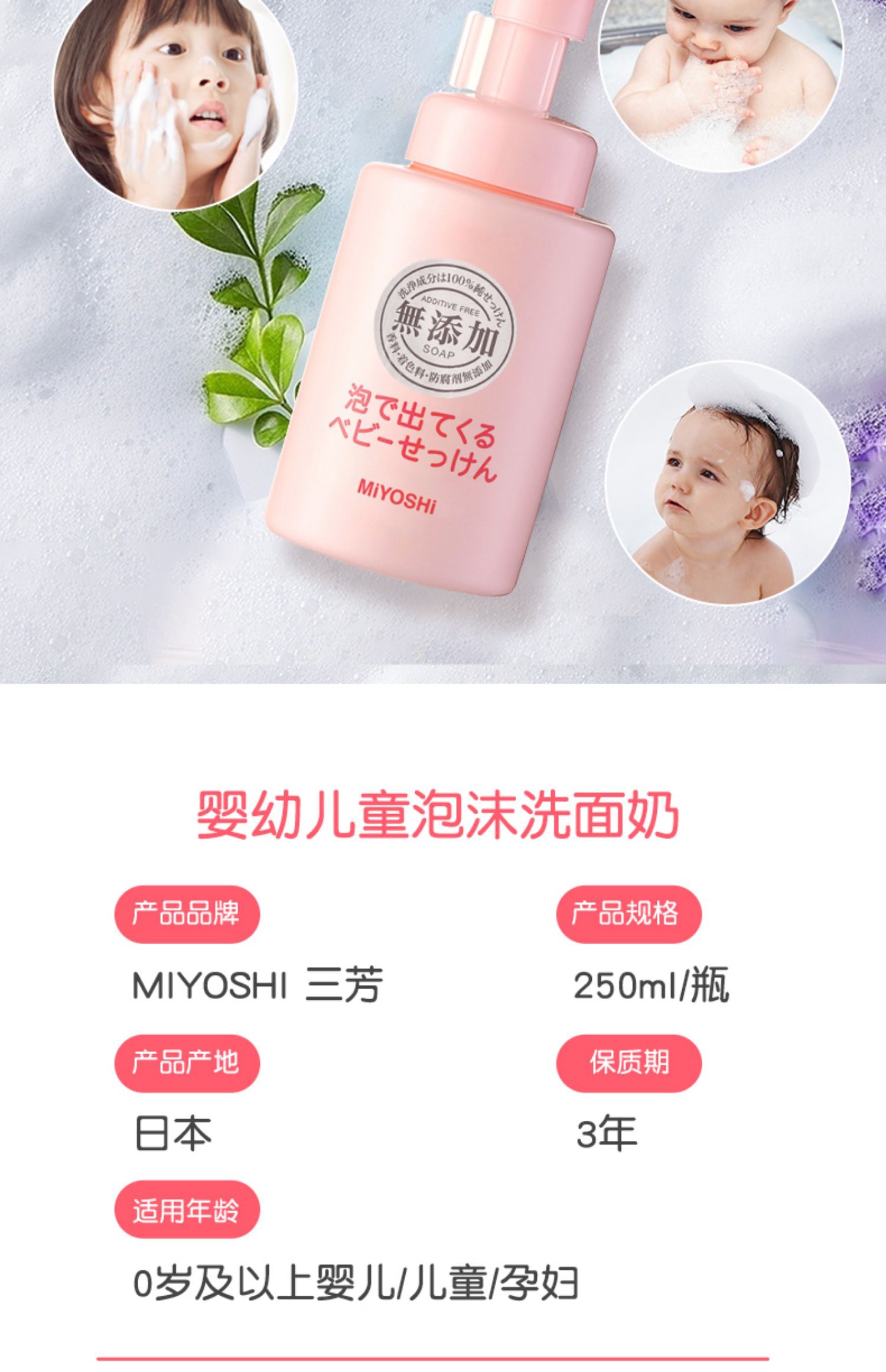 日本Miyoshi三芳儿童洗面奶250ml 宝宝婴幼儿泡沫洁面乳温和 (母婴)新款白色包装
