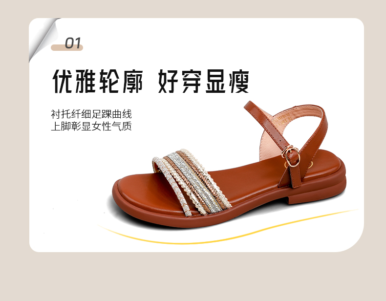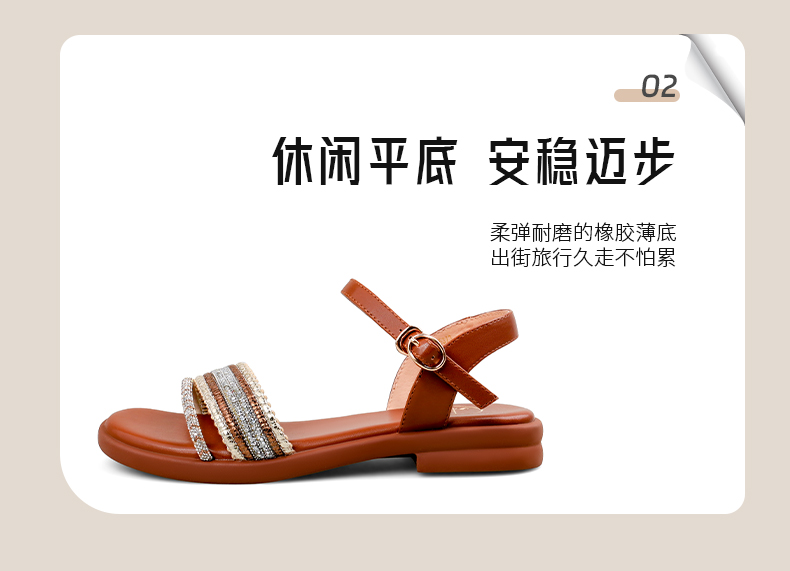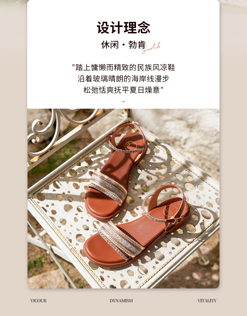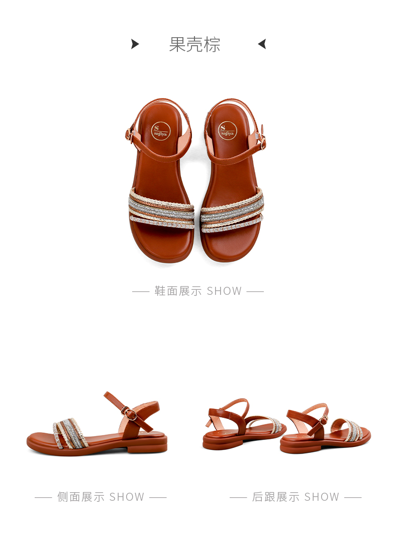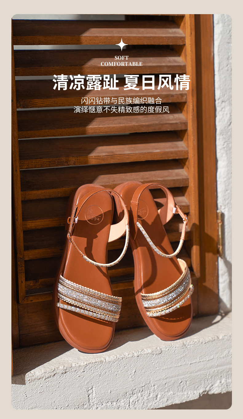Safiya/索菲娅不累脚轻便休闲民族风一字扣带平底复古凉鞋2025SFD2115373/SFD2115M73