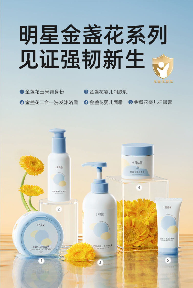 【金盏花三件套32.9元】新生儿幼童专用沐浴露润肤乳护肤面霜套装