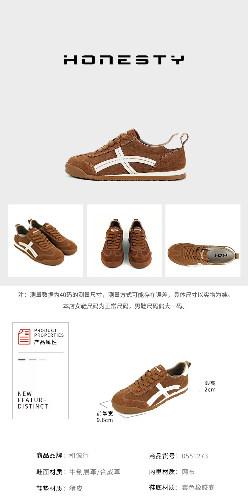 和诚行2026春季新款舒适百搭翻毛真皮复古德训男式休闲鞋0551273