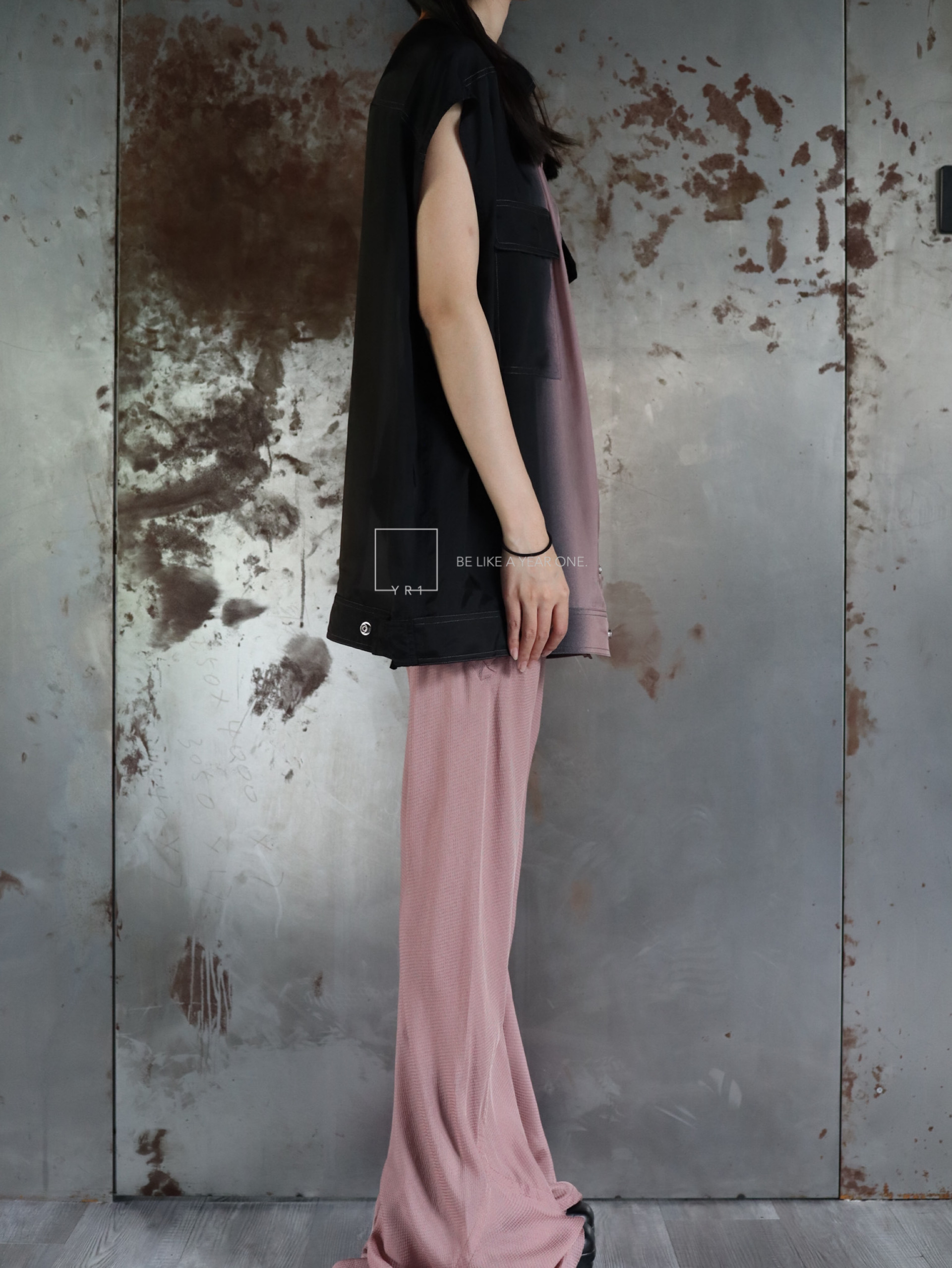 款无袖特大外套长度及臀,无袖,宽松版型。