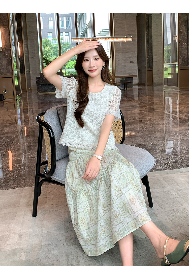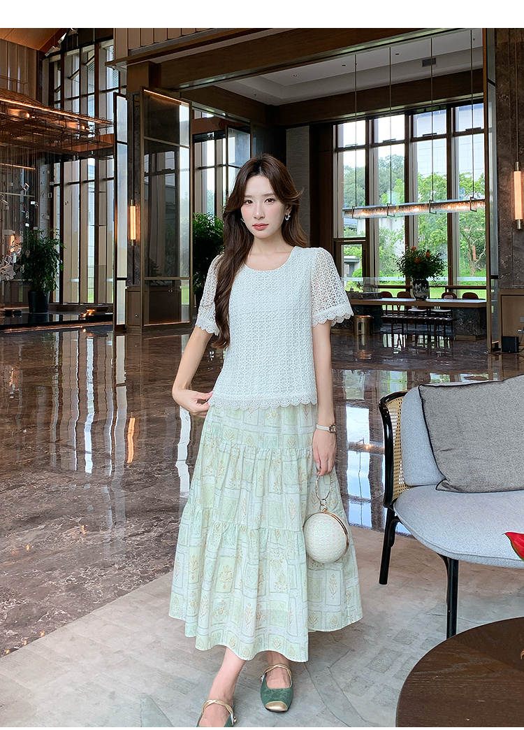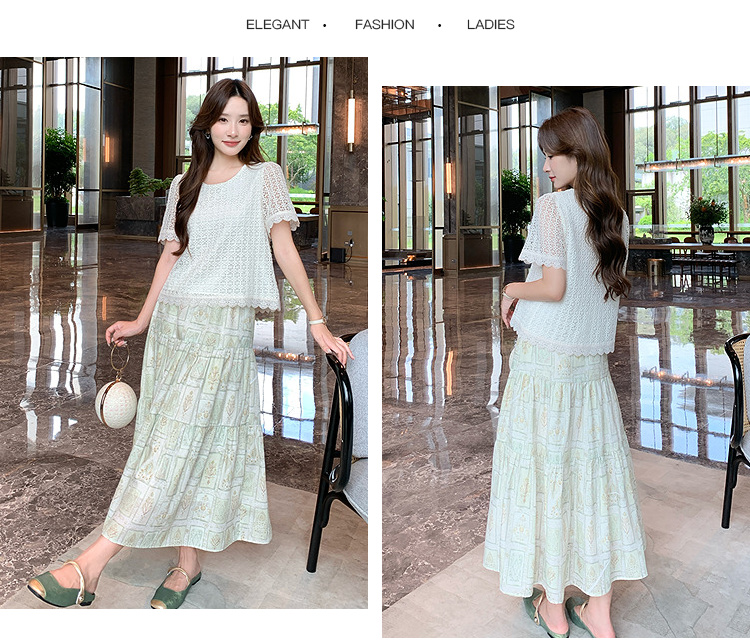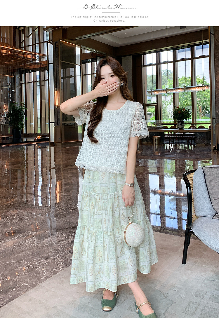 奢姿大码女装2026夏季减龄镂空印花圆领两件套胖妹妹时尚轻奢套装9952990594