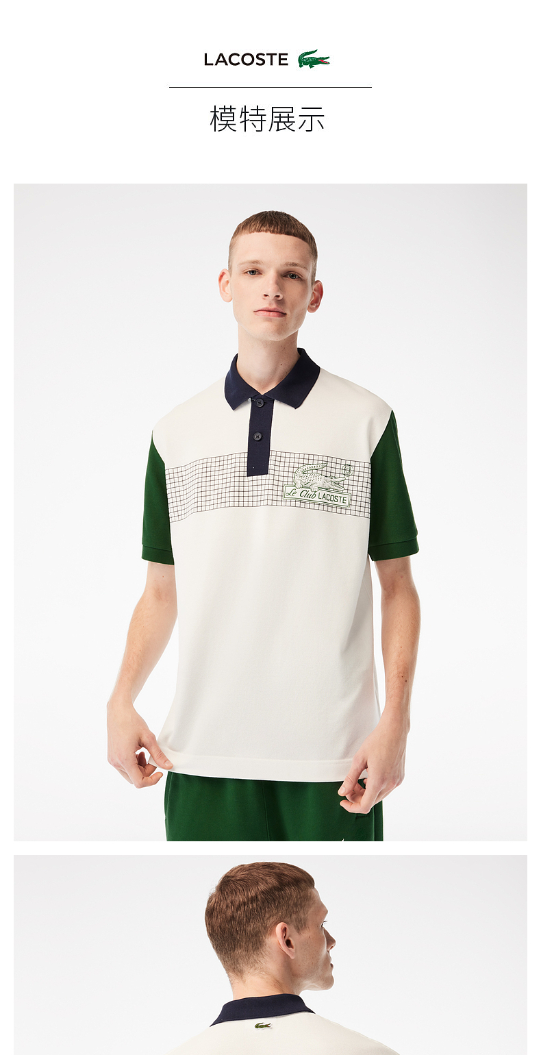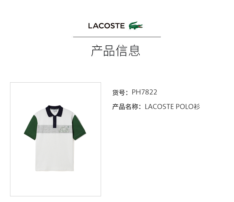 【海南专供价】Lacoste法国鳄鱼男装夏季新款时尚印花拼色短袖POLO衫PH7822-10