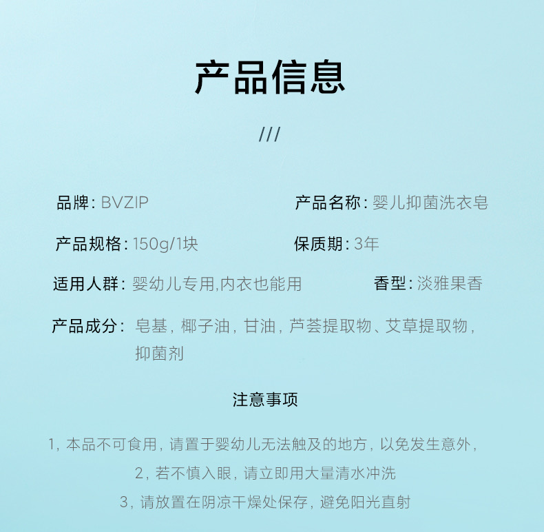 【跨境】BVZIP婴儿洗衣皂150g婴幼儿专用洗衣皂