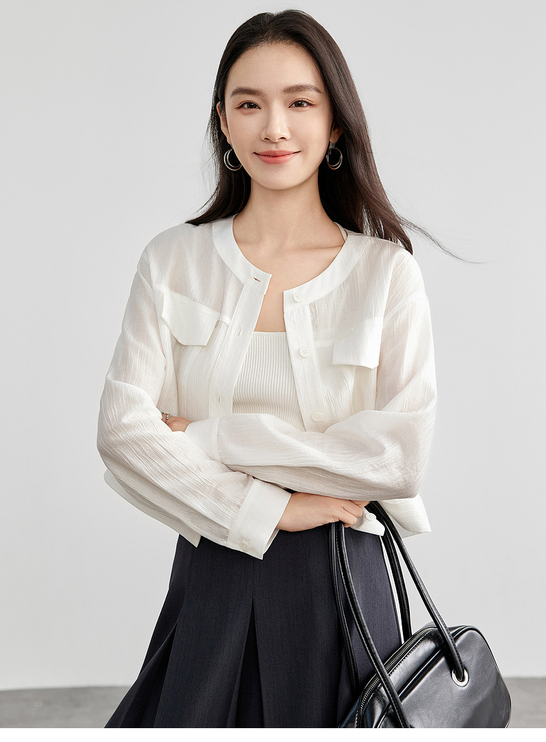 【尚都比拉】遮阳衫轻户外遮阳工装短款廓形莱赛尔会呼吸空调房舒适上衣-151C57854