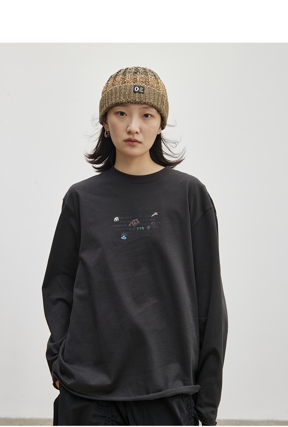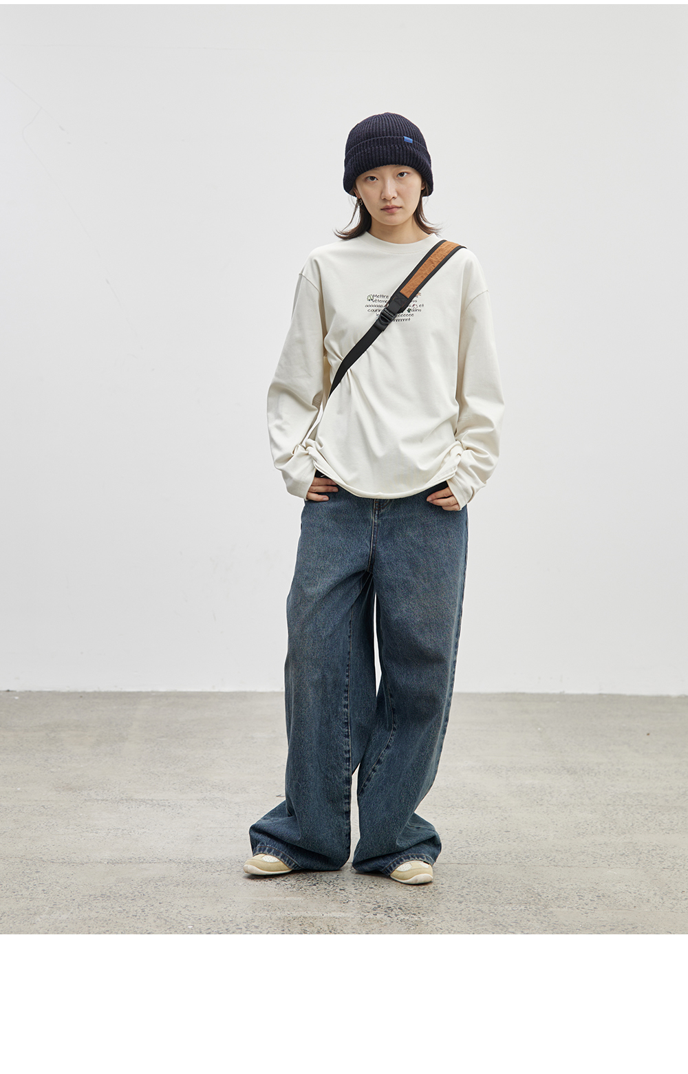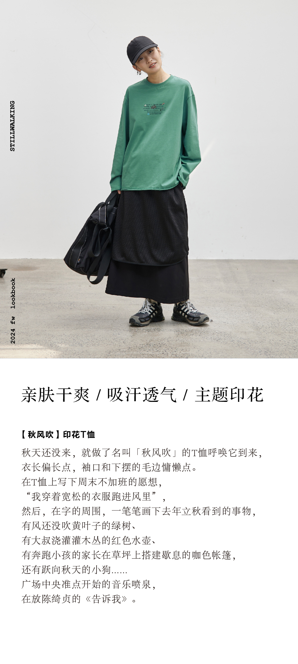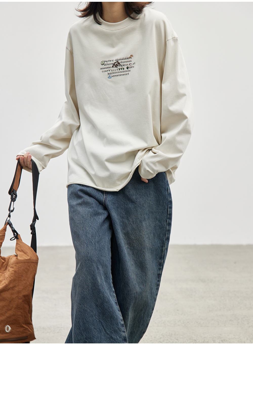 步履不停/4C16067C/慵懒印花图案白色长袖t恤